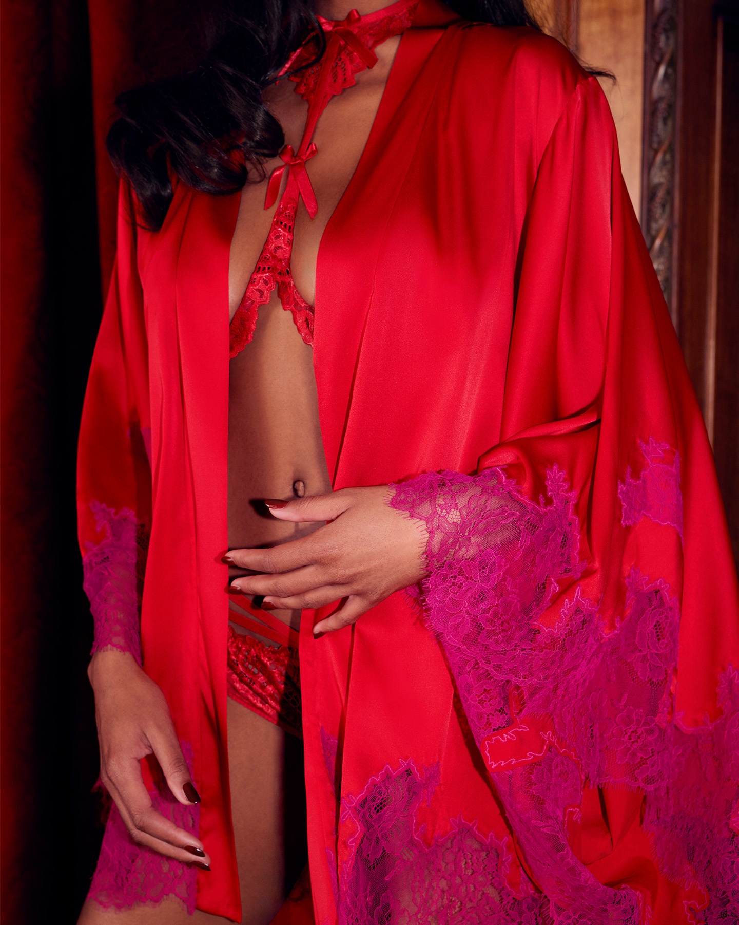 В коллекции Cendrillon красное боди объединяет французскую вышивку с соблазнительным V-вырезом сзади, дополненным атласными лентами и регулируемой застёжкой на шее.
