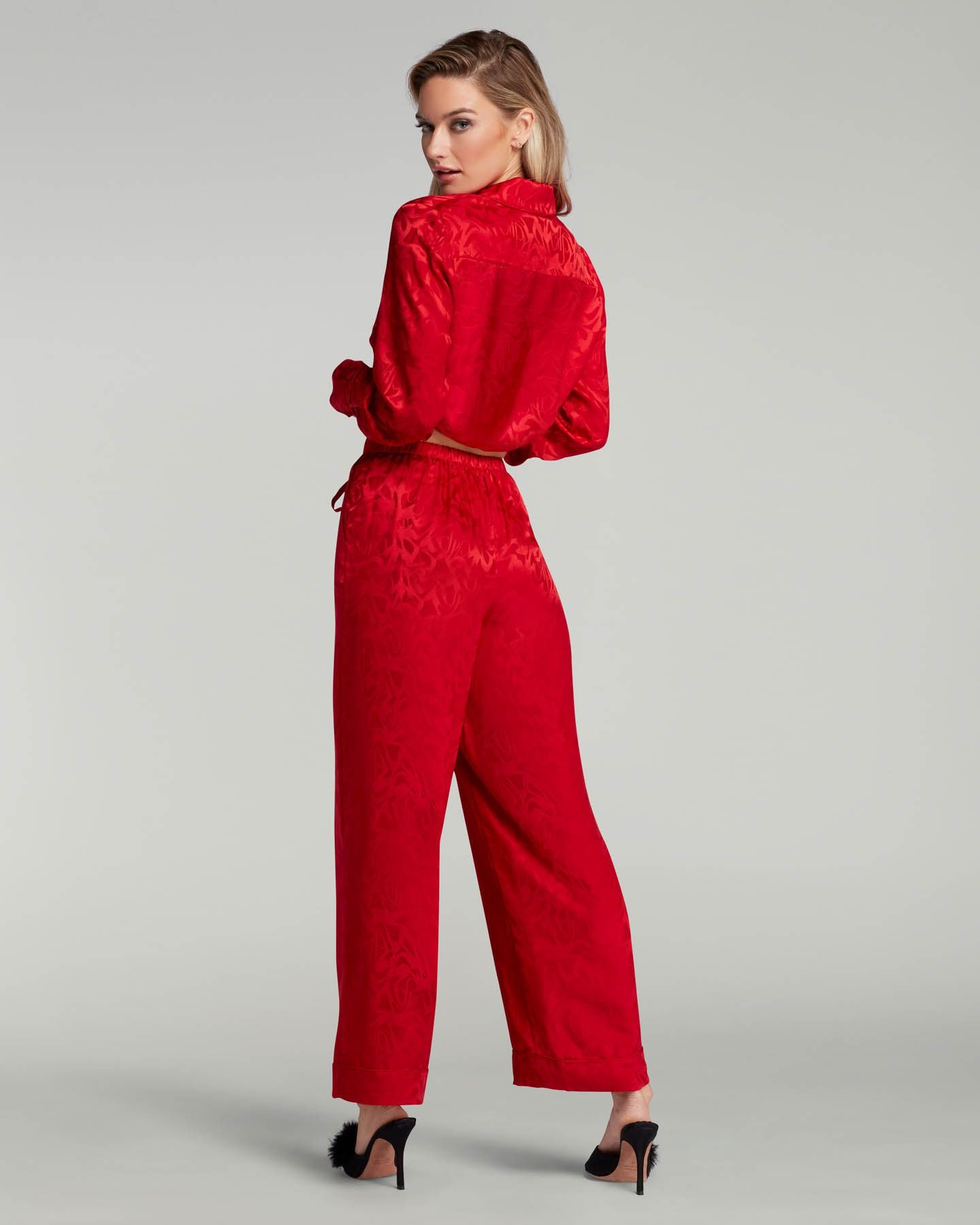 Красные пижамные брюки - воплощение роскошной одежды для отдыха. Модель пошита из шелкового жаккарда с фирменным логотипом AP. Для создания комплекта, который излучает как комфорт, так и высокий класс гламура, сочетайте с рубашкой Kassidie в тон.