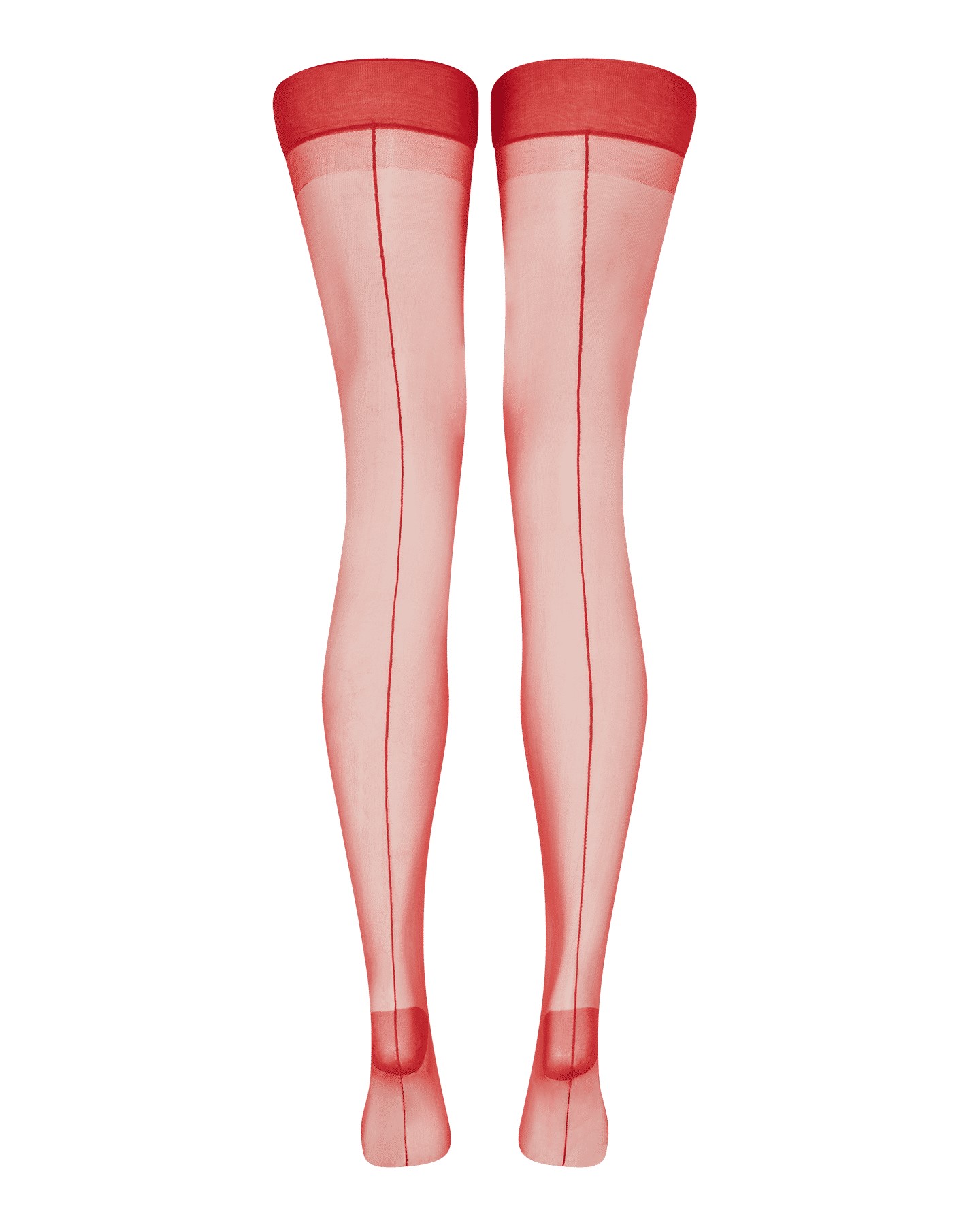 Элегантные красные чулки под пояс Opale плотностью в 15 ден дополнены имитационным швом по центральной задней части, добавляя изысканный акцент в ваш образ.