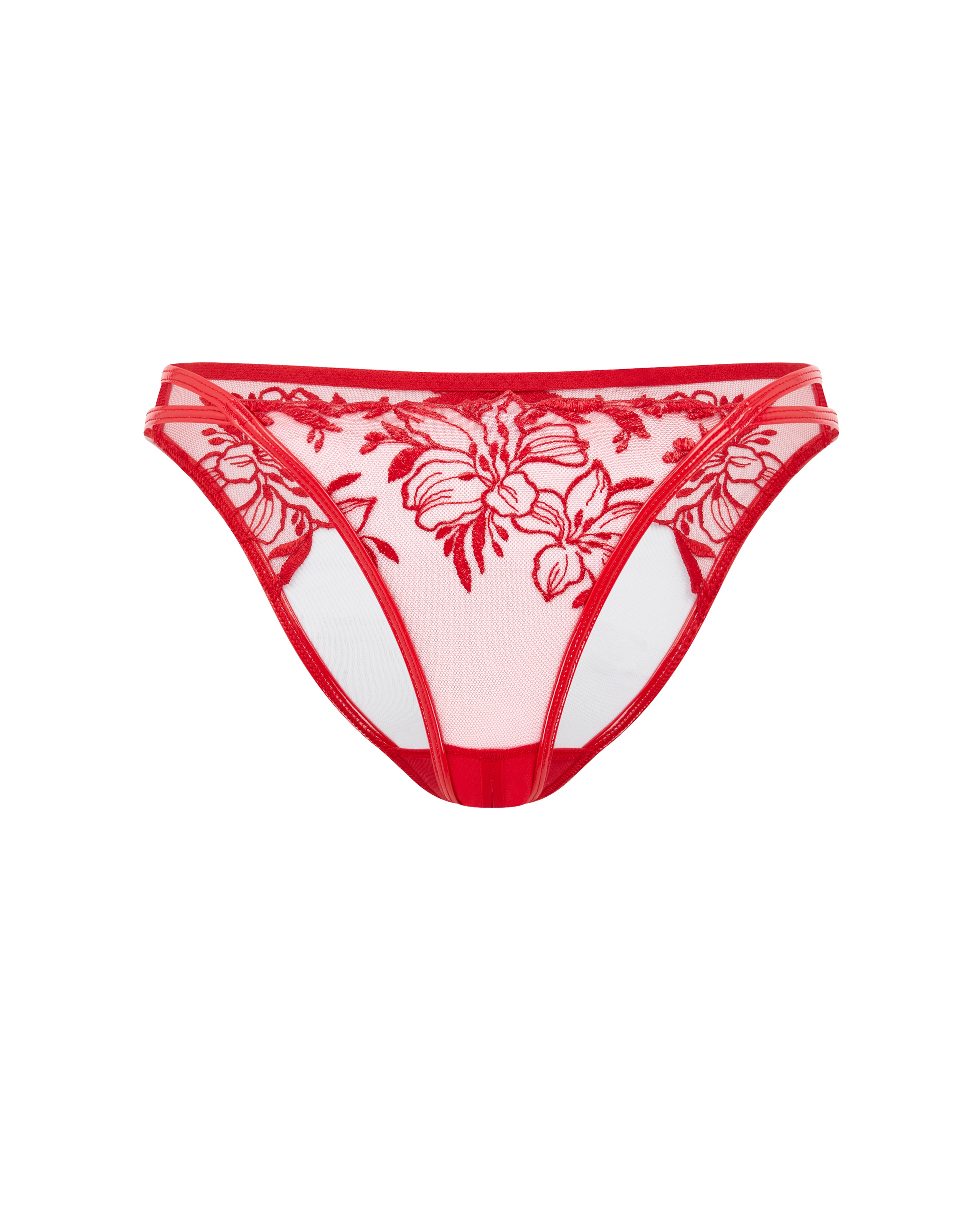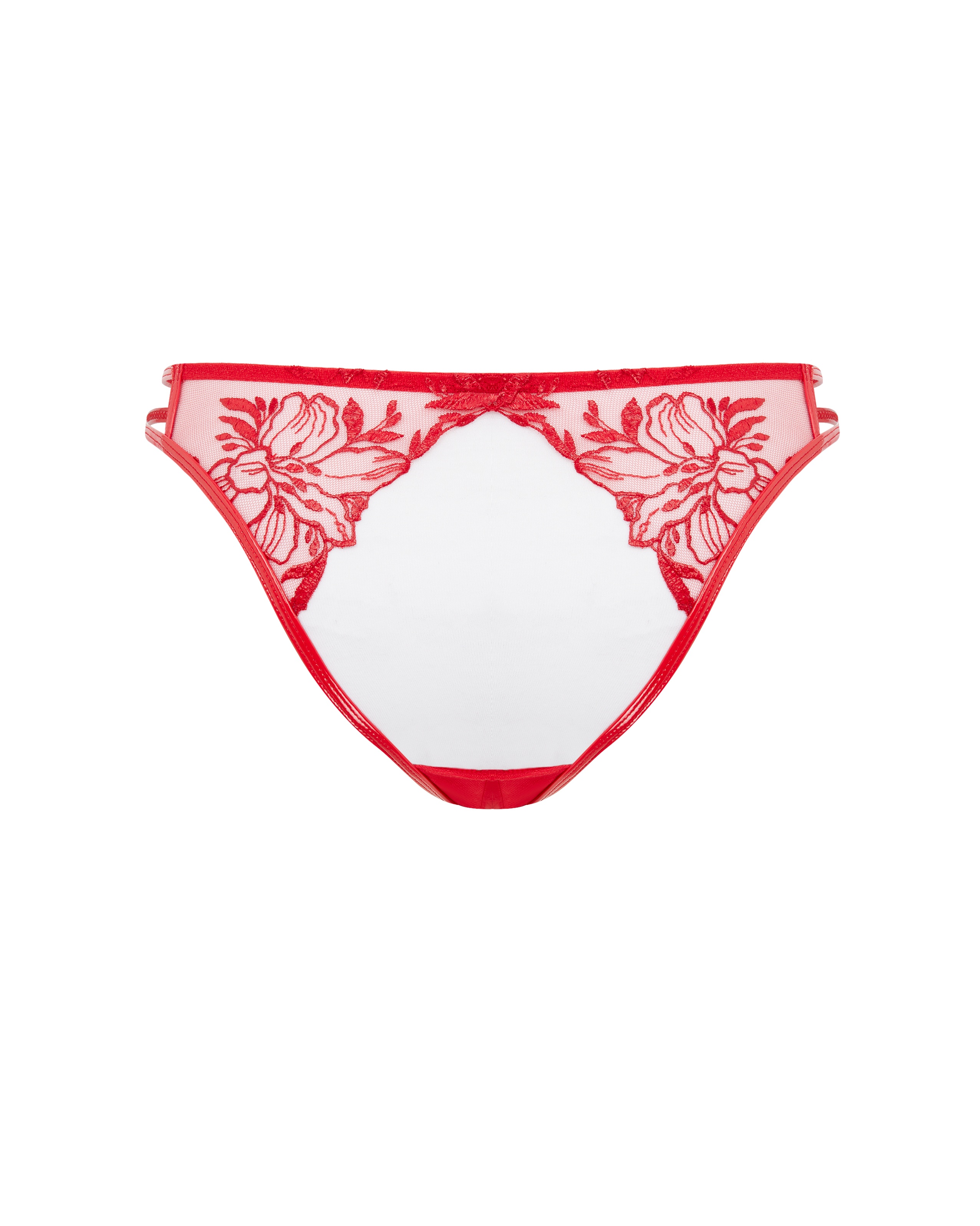 Красные французские трусики Ozella с прозрачной фатиновой основой и провокационным дизайном открытой ластовицы. Модель украшена цветочной швейцарской вышивкой и имеет чувственное покрытие с мокрым эффектом. Обвязка придает изделию изюминку, а в сочетании с остальной частью коллекции Ozella создает неотразимый ансамбль.