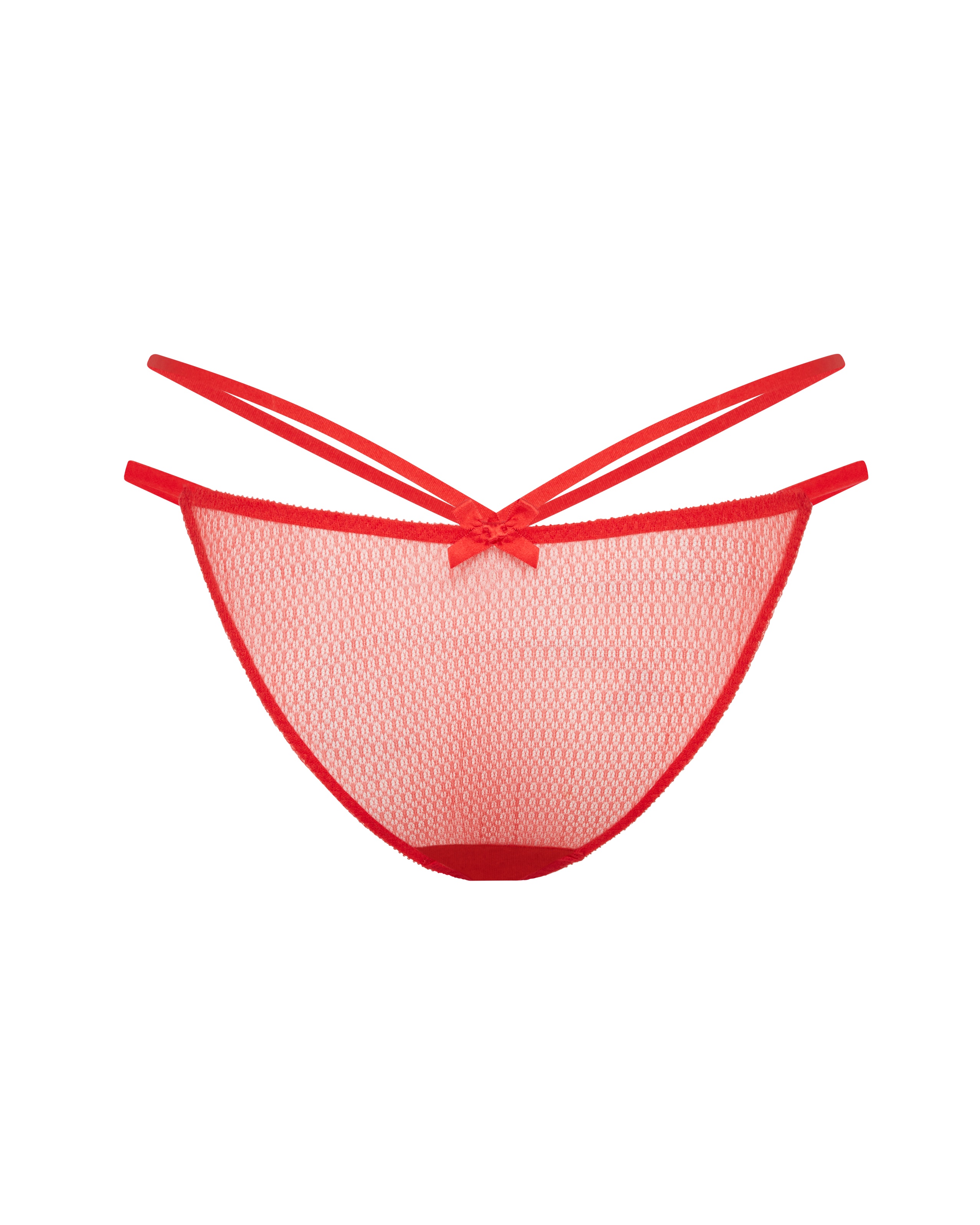 Классические трусы Nicki красного цвета с панелями из европейского тату-тюля и атласными лямками спереди и на бедрах. Низкая посадка, стиль танга и атласные банты спереди и сзади добавляют пикантности образу. С полным комплектом Nicki вы почувствуете силу, с которой нельзя не считаться.