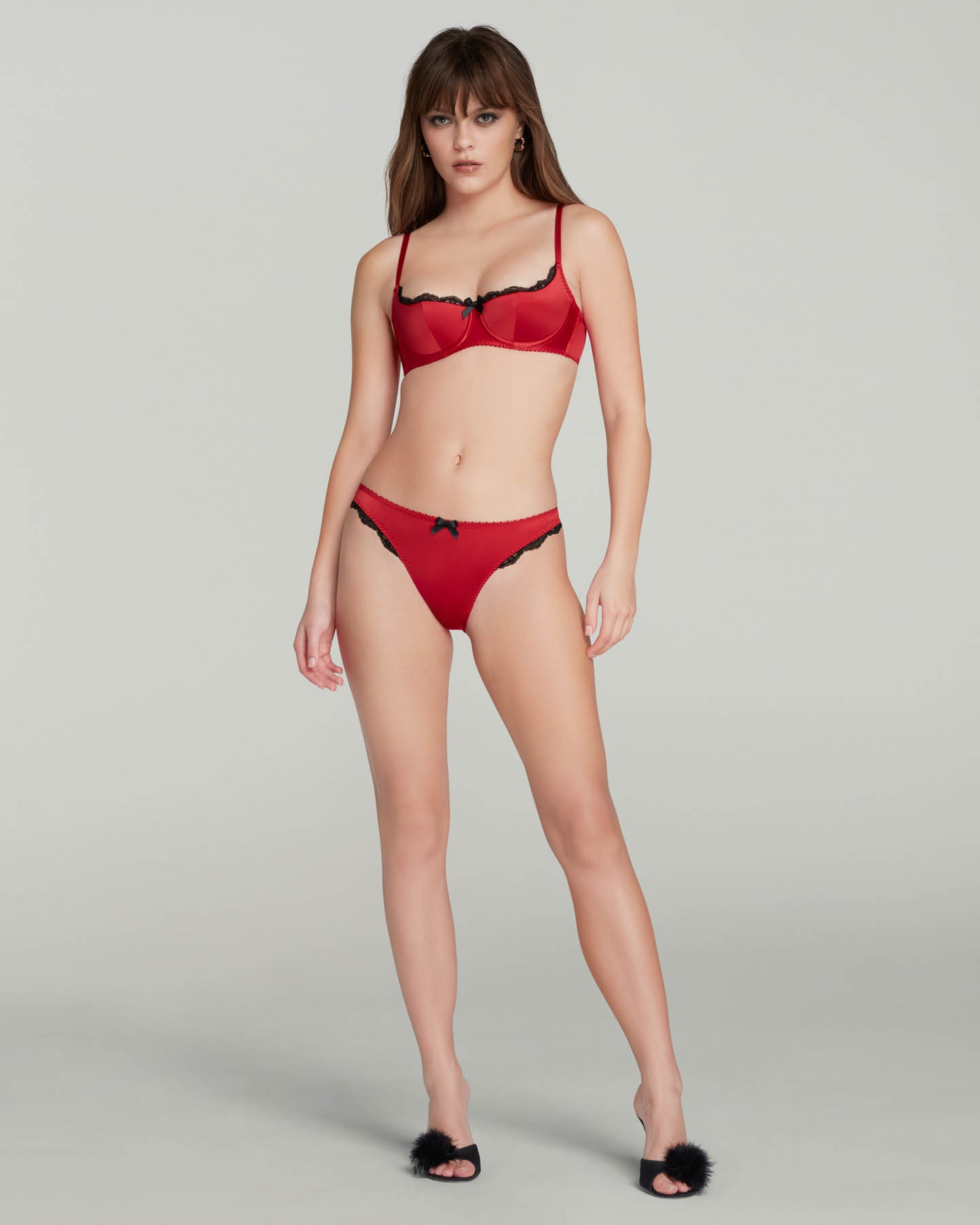 Красные трусики Sloane представлены в классической форме, подчеркнутой высоким вырезом, который визуально удлиняет ноги и подчеркивает фигуру. Изготовленные из мягкого эластичного атласа, они идеально сочетают в себе комфорт и роскошь. Элегантно отделанное черным кружевом и черными атласными бантами, это изделие легко сочетает в себе изысканность и чувственность. Чтобы достичь вершины вампирской эстетики, дополните трусики остальной линейкой Sloane.
