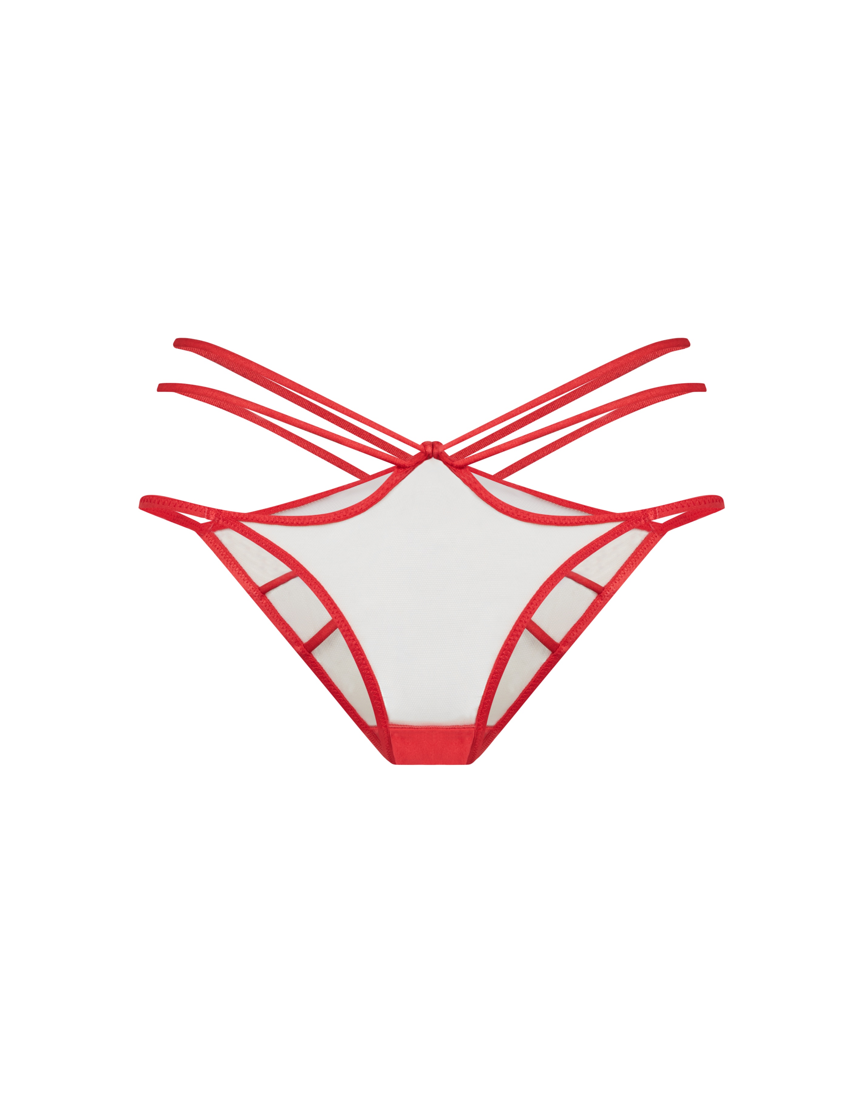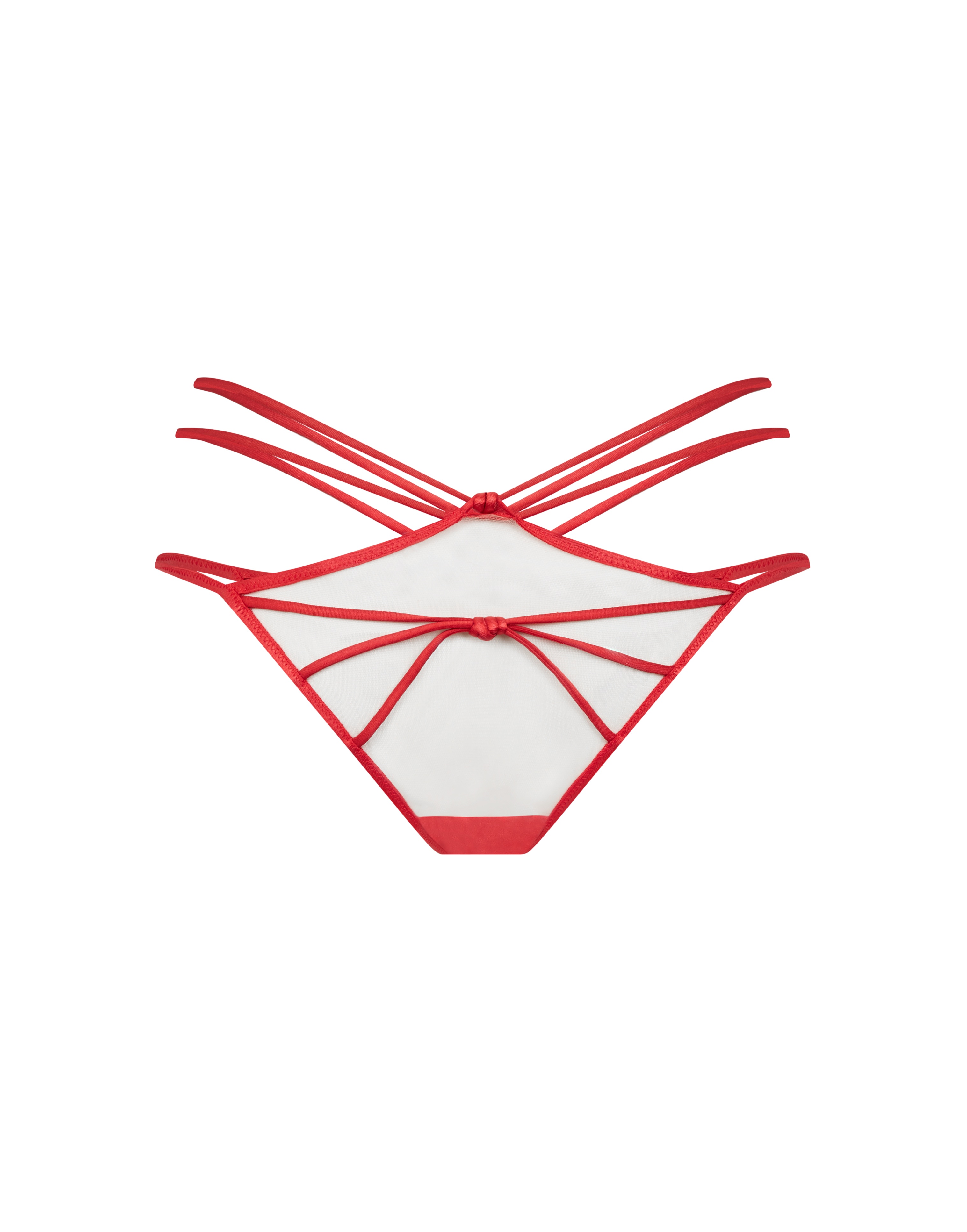 Классические трусы Ozara красного цвета сочетают соблазнительно прозрачный итальянский тюль с ремнями, завершенные деталями в виде узлов, приковывающих внимание. Объедините с комплектом Ozara для целостного образа.