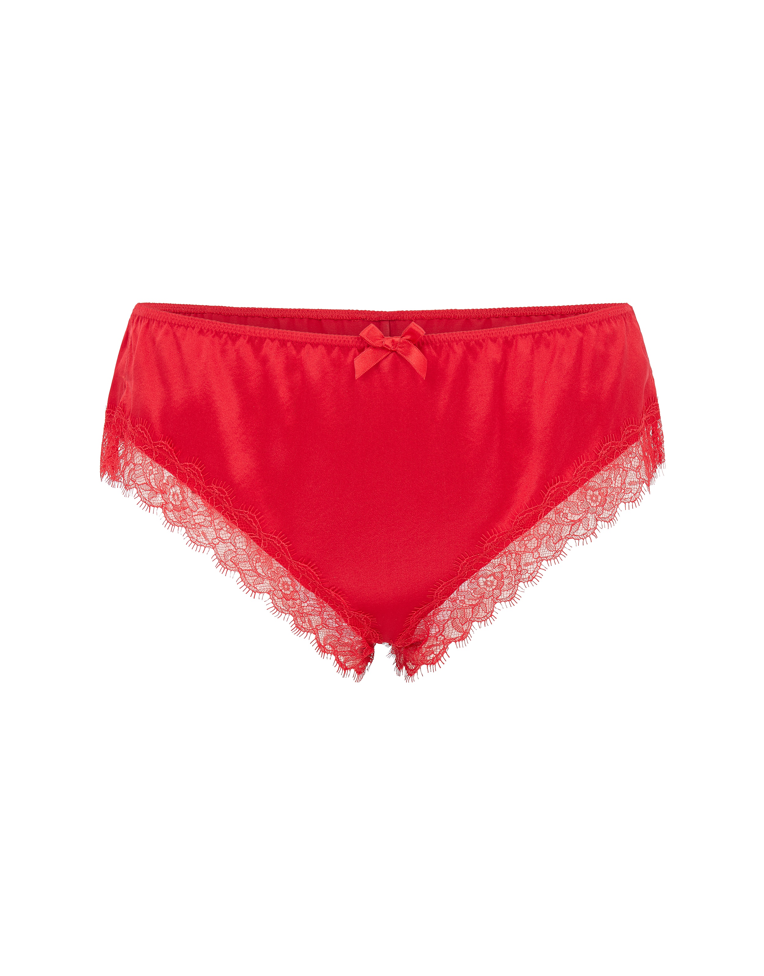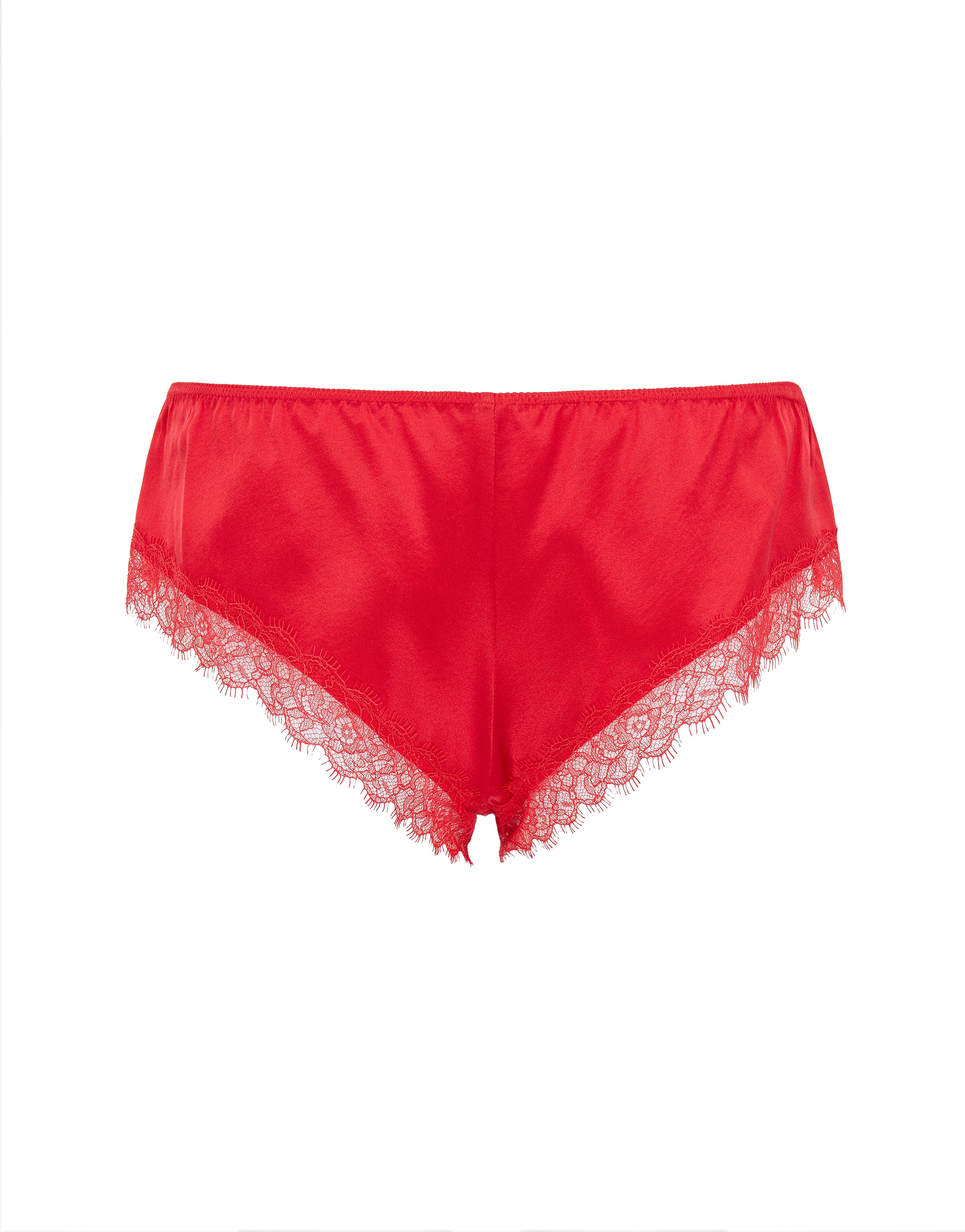 Мини-шорты из декадентской коллекции Gisele выполнены из красного эластичного шелка. Глубокий вырез по линии бикини не стесняет движения, что позволяет избежать заломов при носке. Края отстрочены тонким кружевом Ливерс с краем «реснички». Тонкая резинка на поясе украшена атласным бантом в цвет.