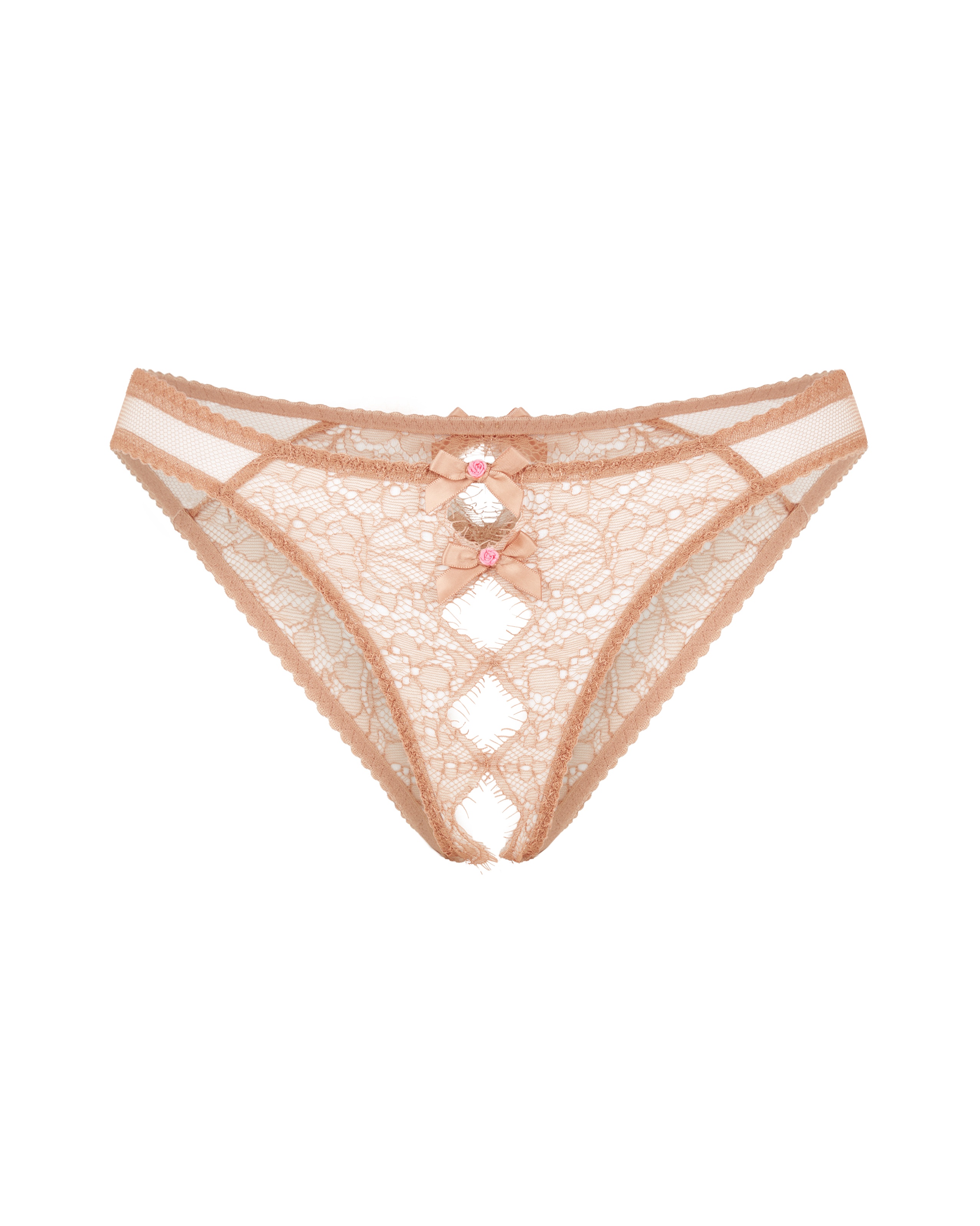 Французские трусики Lorna Lace в нежном кремовом цвете дополнят романтический образ с бюстгальтером и поясом из этой коллекции. Модель создана из тонкого ажурного кружева на полупрозрачной сетке, что создает эффект обнаженного тела, и украшена атласными бантами с бутонами.