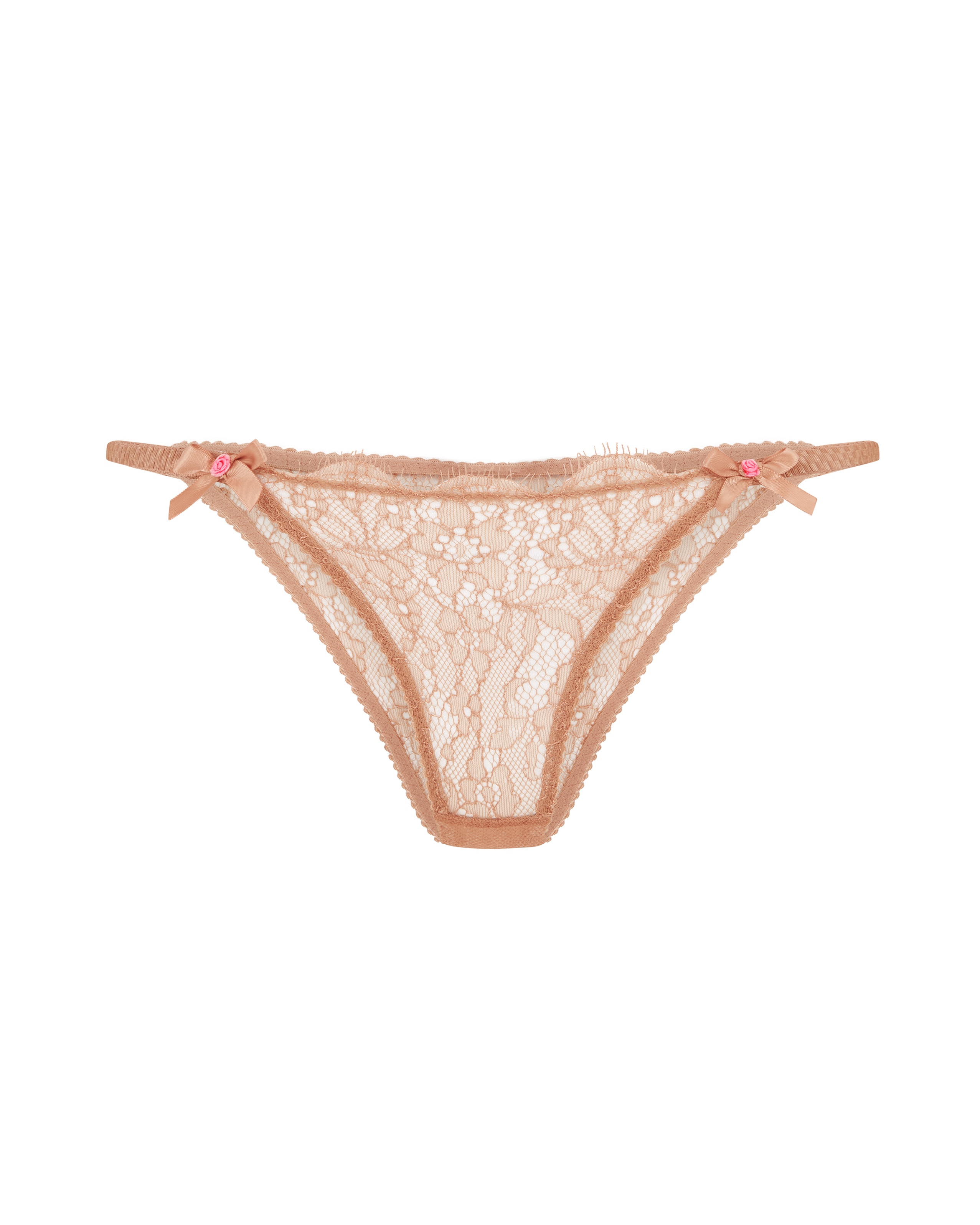Трусики-брифы Lorna Lace выполнены из узорчатого кружева кремового цвета, которое сливается с кожей и создает утонченный образ. Модель украшена бантами с бутонами роз, а перемычки по бокам декорированы атласными драпировками. Идеальным дополнением комплекта станут бюстгальтер и пояс из коллекции Lorna Lace.