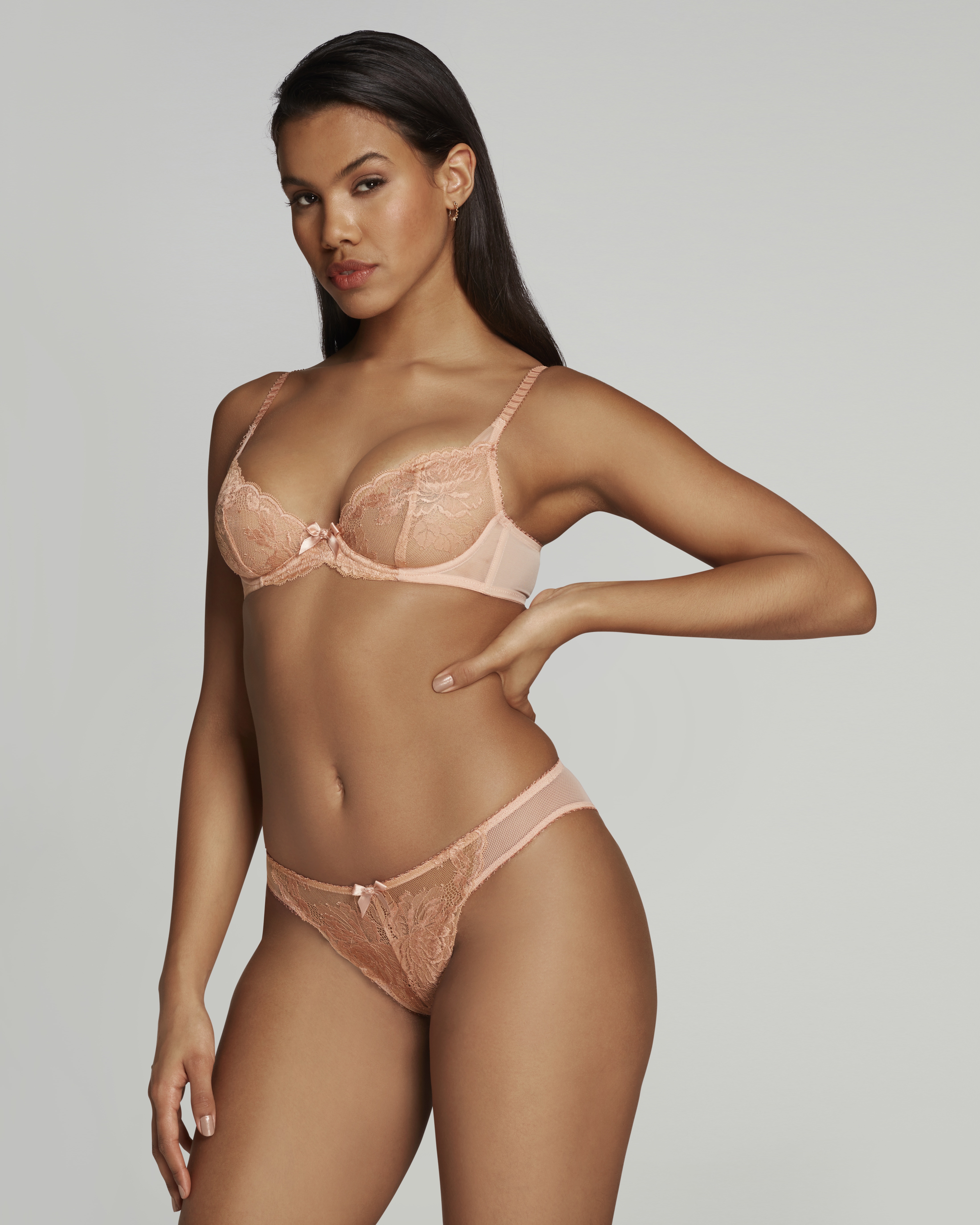 Трусы брифы Yara в бежевом цвете дополнят универсальный повседневный комплект в сочетании с бюстгальтером из этой же коллекции. Модель выполнена из тонкой сетки и украшена кружевом в тон. Центр декорирован атласным бантом.