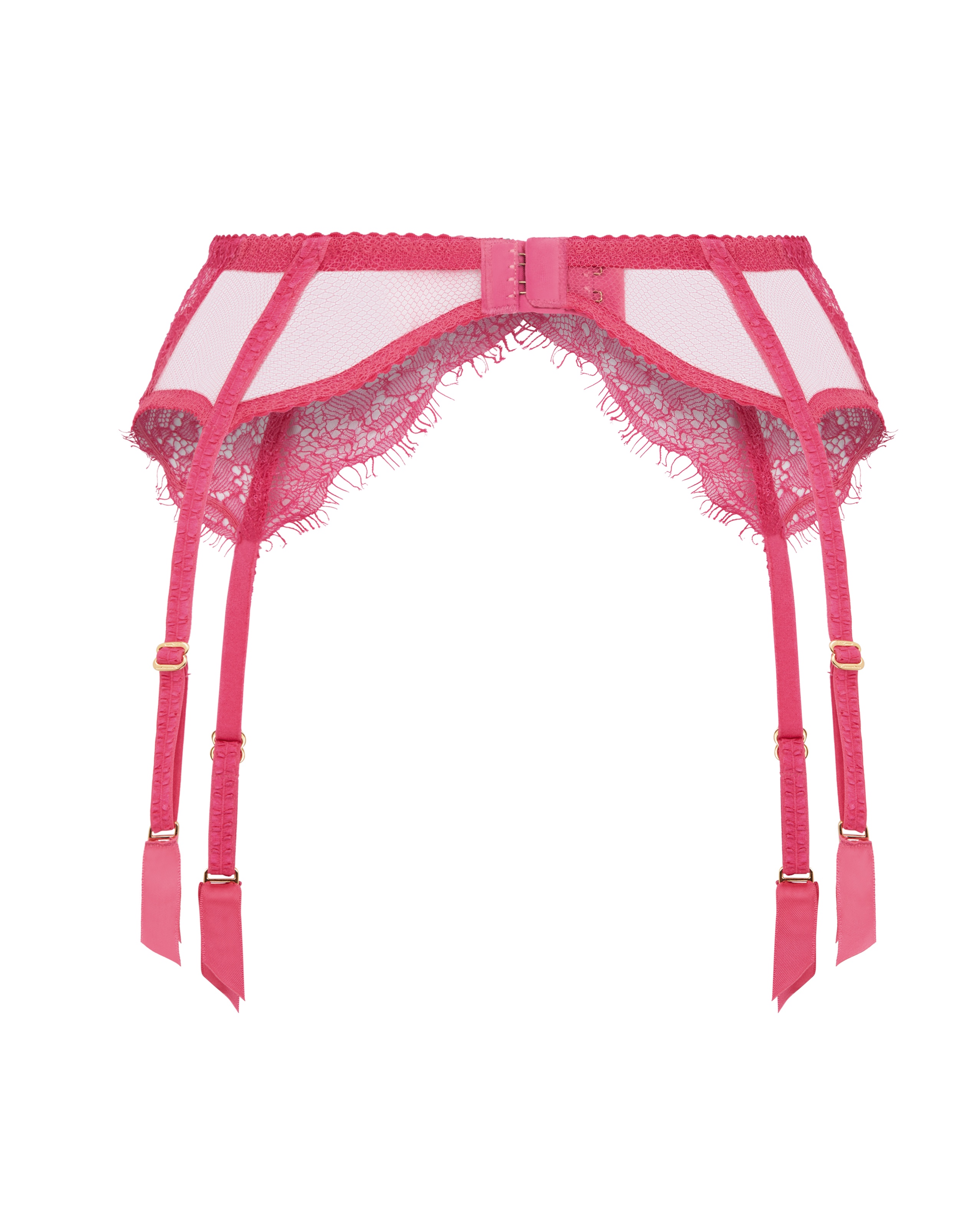 Яркий пояс для чулок цвета фуксия Lorna Lace будет притягивать взгляды. Модель пошита из итальянского кружева Leavers, специально разработанное для этой коллекции. Регулируемые атласные ремешки обеспечивают комфортную посадку. Фурнитура, включая ползунки и элементы крепления, имеет покрытие из настоящего золота. Застегивается сзади в центре с помощью регулируемых застежек-крючков. Финальным аккордом служат атласные бантики с миниатюрными розочками. Рекомендуется сочетать с остальными предметами коллекции Lorna Lace для достижения стильного и элегантного образа.
