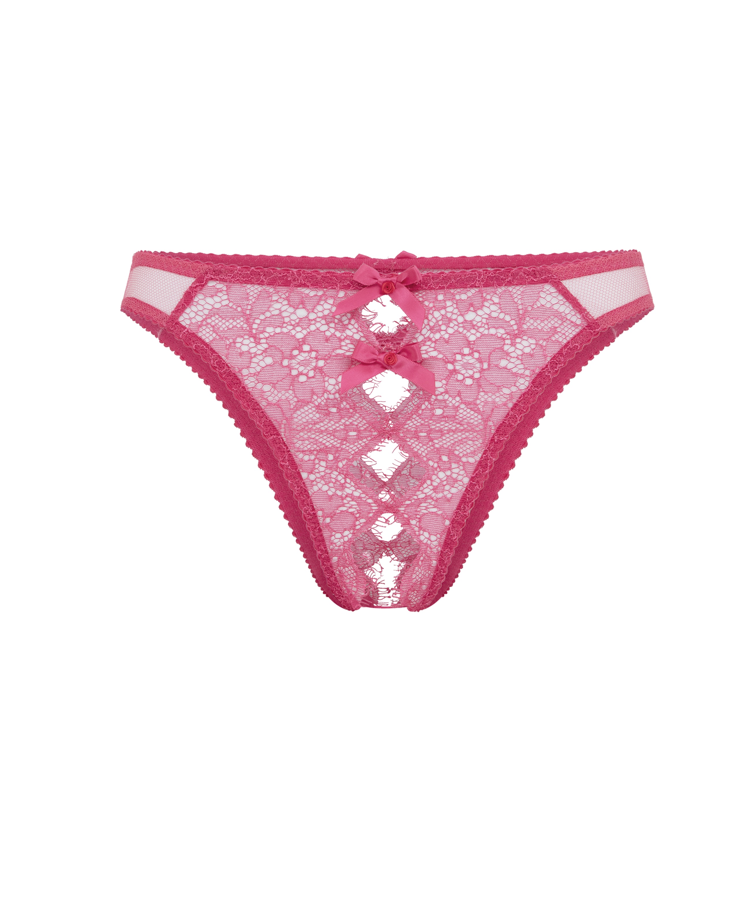Яркие французские трусики с открытой ластовицей цвета фуксия из коллекции Lorna Lace привлекут внимание. Итальянское кружево Leavers, специально разработанное для них, добавляет модели изысканности, а соблазнительные вырезы на передней и задней панели придают игривости. Детали в виде атласных бантов с миниатюрными розочками и французских швов завершают образ. Рекомендуется сочетать с остальными предметами коллекции Lorna для создания актуального элегантного образа.