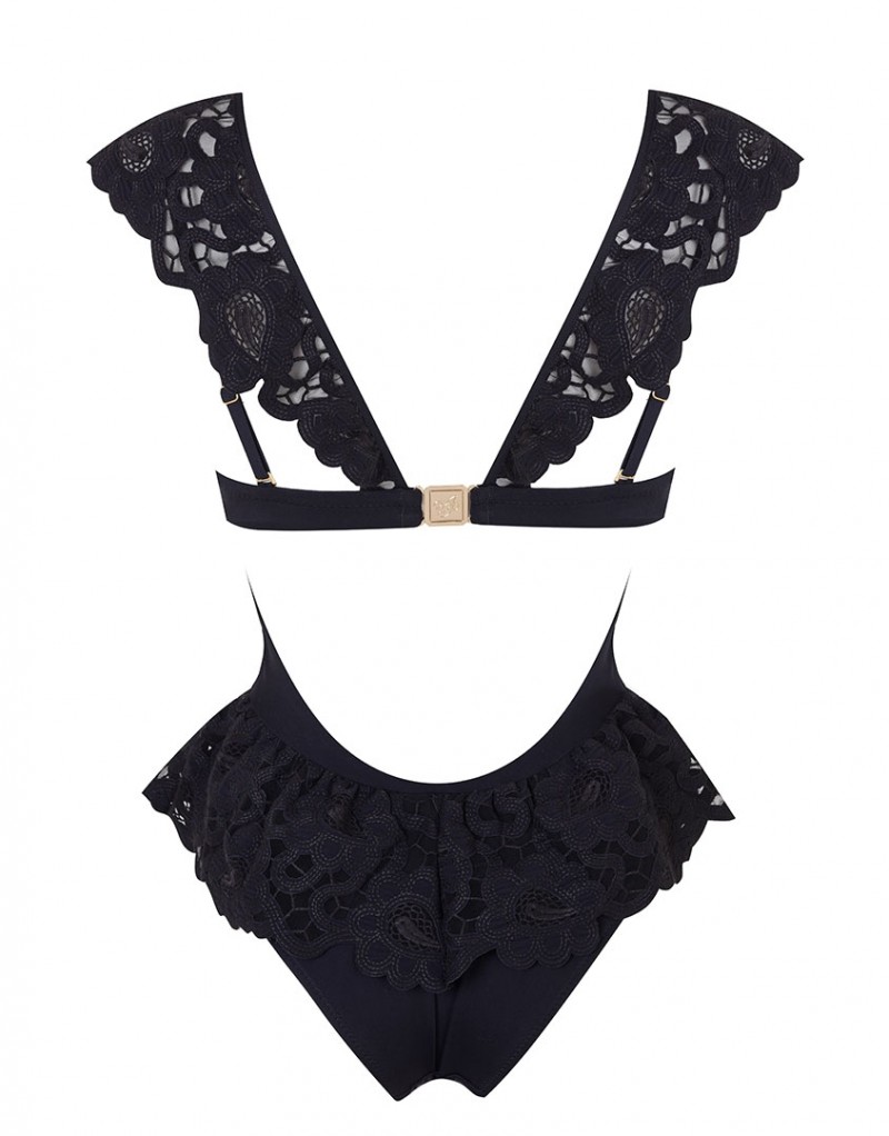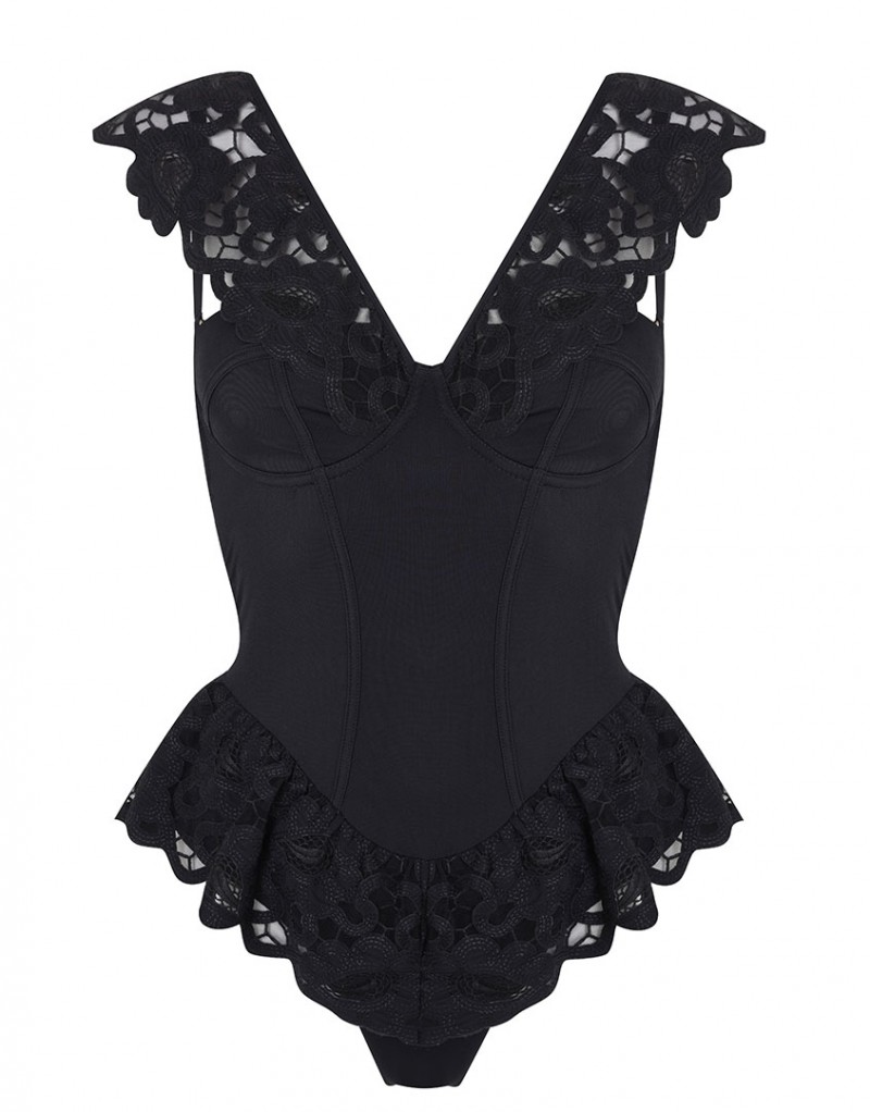 Романтичная коллекция Daize в стиле ретро станет вашей любимой. Черный слитный купальник с приспущенными широкими бретелями украшен драпировками из флорального кружева на груди и на бедрах и дополнен соблазнительными вырезами по бокам и на спине. Золотистая застежка с гравировкой AP завершает образ. Материалы и уход: 60% полиамид, 40% эластан. Подкладка: 85% полиэстер, 15% эластан. Кружево: 50%, 37% полиамид, 13% полиэстер. Сетка: 100% полиамид. Рекомендована ручная стирка.