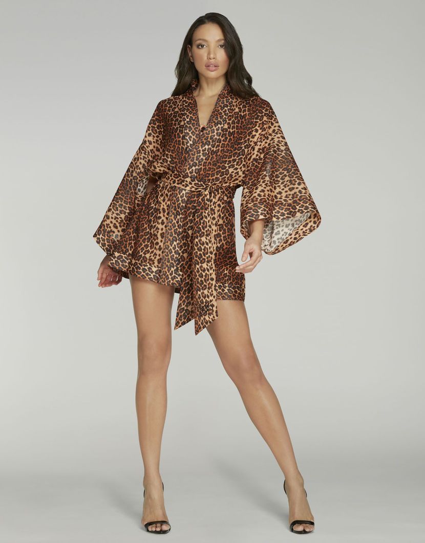 Кимоно из коллекции Kittie сшито из тончайшего натурального хлопка. Классическая модель для бренда выполнена в рамках эстетики гламура 80-х и страсти к семейству диких кошачьих. Широкий пояс позволяет приталить силуэт, подчеркнув естественные изгибы фигуры. Носите этот просторный и изысканный халат в сочетании с другими предметами яркой коллекции Kittie или с однотонными изделиями из других линий, подчеркивая экстраординарность анималистичной расцветки.