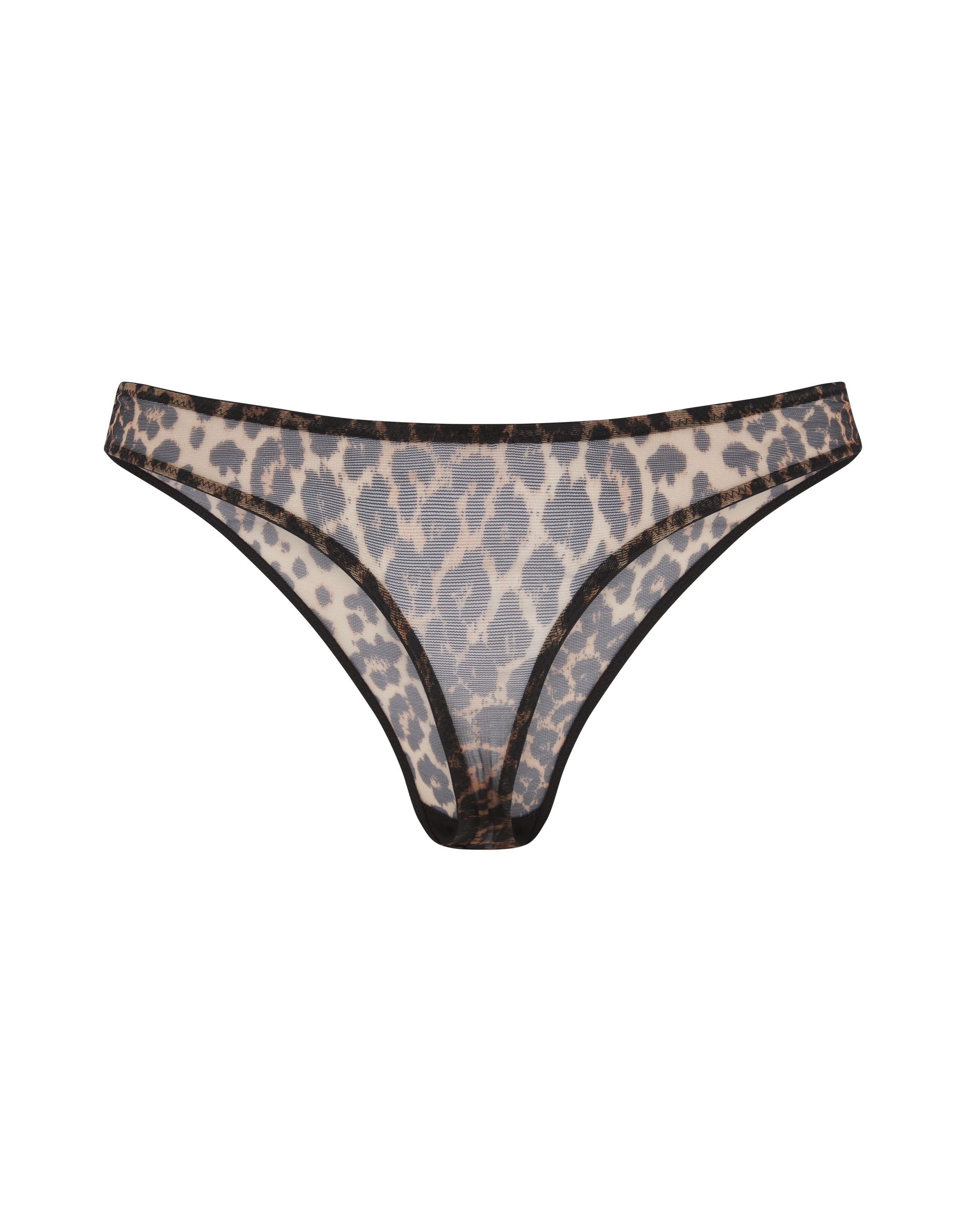 Леопардовые стринги Lucky сшиты из эластичного бельгийского тюля. Провокационная расцветка сбалансирована лаконичным базовым кроем. Средняя посадка, анатомически комфортное оформление линии бикини и хлопковая ластовица — все детали продуманы до мелочей.