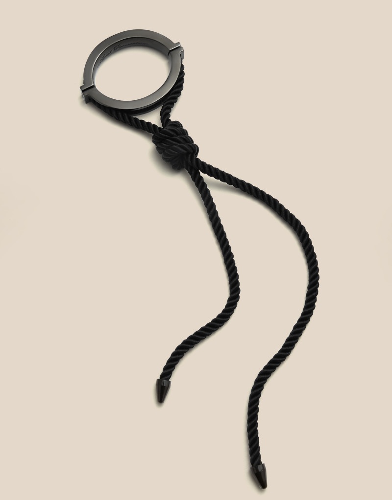 Острые ощущения начинаются вместе с крайне провокационной и абсолютно роскошной коллекцией браслетов и чокеров Xena, созданной для постельных игр. Наручник выполнен из блестящего цинка и украшен внутри гравировкой с логотипом Agent Provocateur. Черный витой шнур декорирован полированными металлическими наконечниками и дополнен узлами, которые позволяют его легко затягивать и распускать.