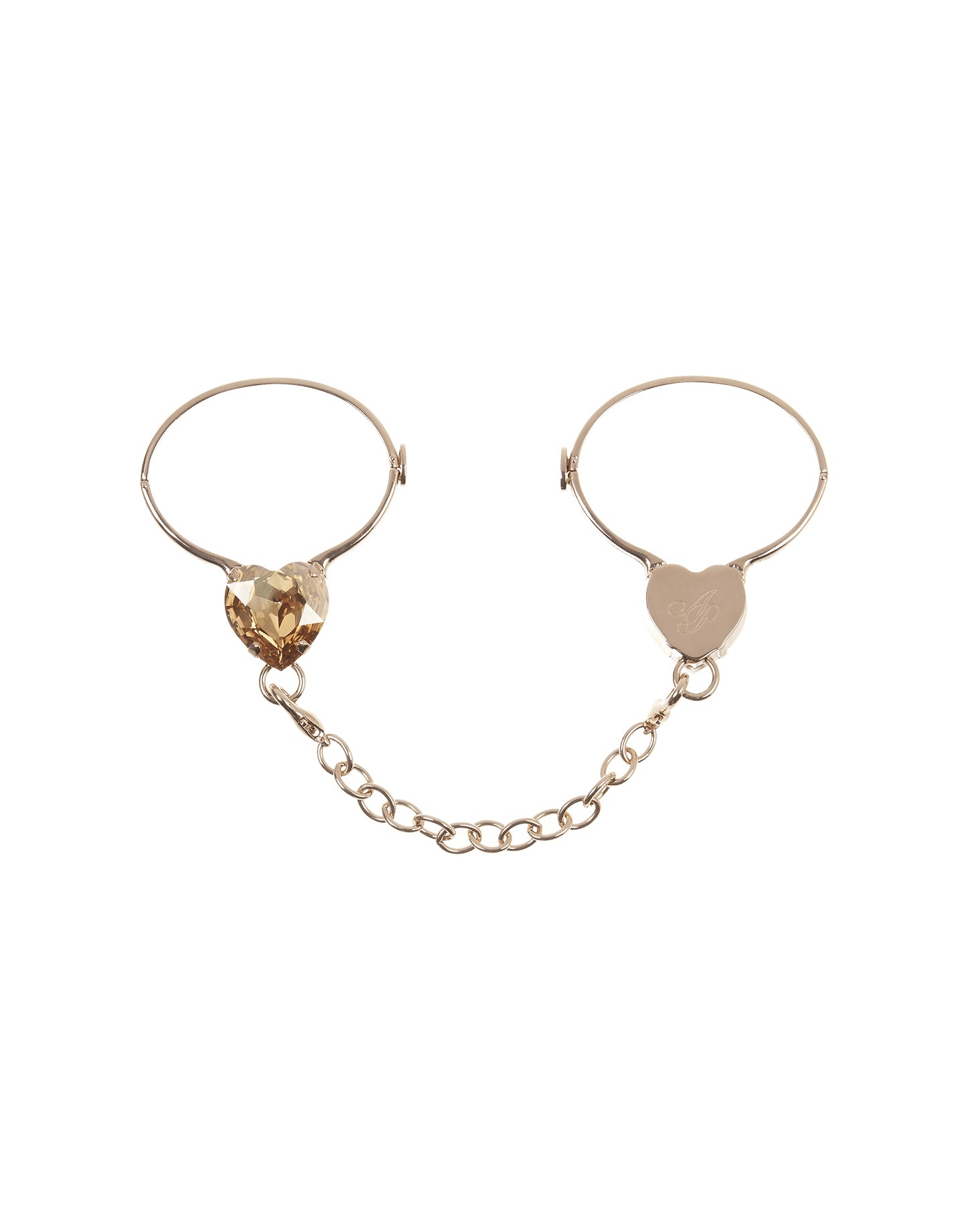 Браслеты-наручники из серии украшений Corazon сделаны из металла с блестящим покрытием цвета розового золота. Тонкие каффы декорированы крупными кристаллами Swarovski в форме сердец, что создает привлекательный контраст фактур и подчеркивает хрупкость запястий. Это украшение дополнит любой комплект Agent Provocateur.
