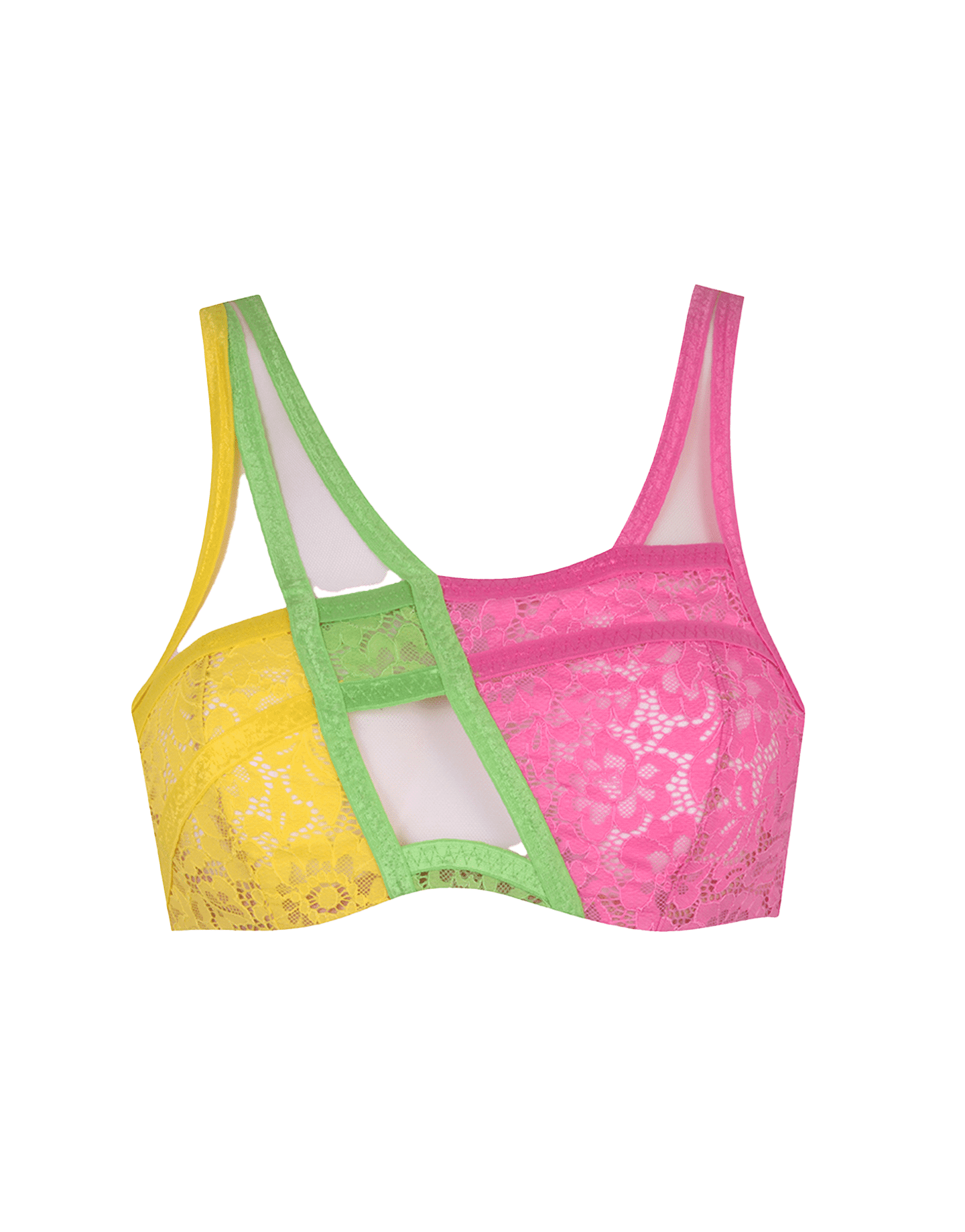 Познакомьтесь с Marty - яркой коллекцией, вдохновленной спортивным стилем 80-х и смелым колор блокингом в духе работ фотографа Чейко Лейдмана. Игривый бюстгальтер из французского кружева выполнен в бандажном стиле. Объединенная косточка и соблазнительная вставка из прозрачного тюля завершают образ.