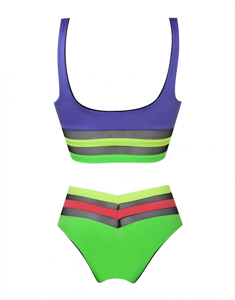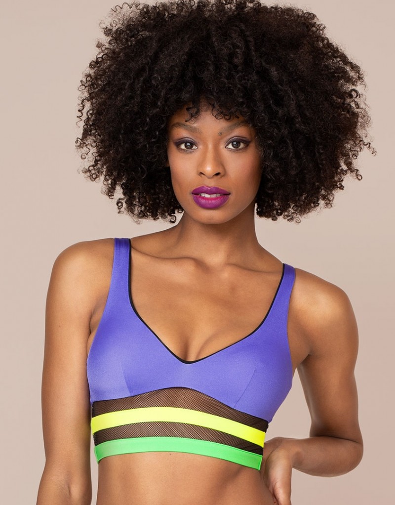 Ощутите летний зной с Zenaya - пляжной коллекцией, в которой невероятно насыщенные оттенки сочетаются с изящными линиями. Лиловый бюстгальтер бикини с формованными мягкими чашками и глубоким декольте обрамлен снизу сеткой и эффектными неоновыми полосками, создающими спортивный силуэт. Эффектная модель из эластичной ткани.