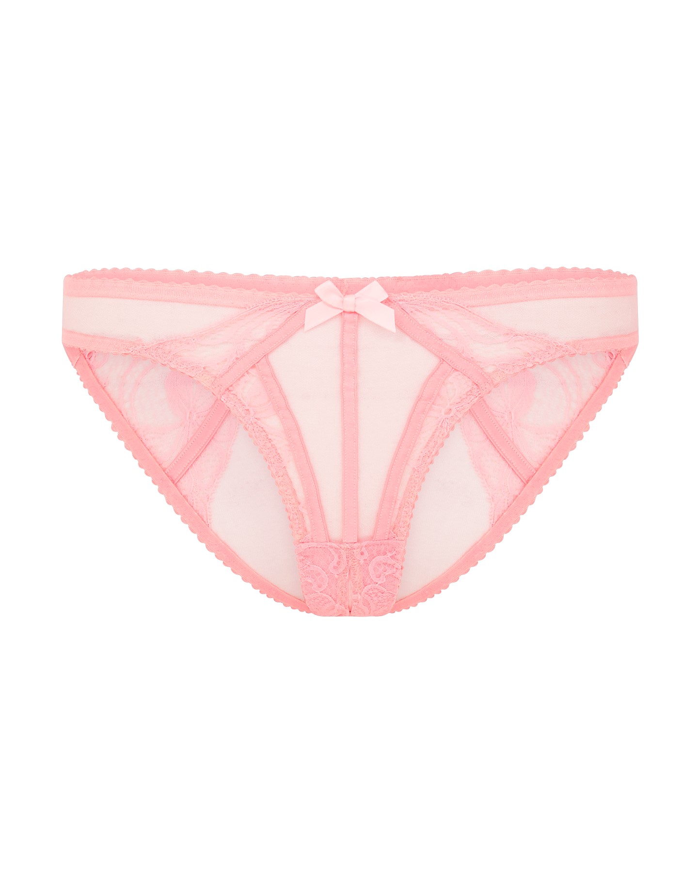 Нежно-розовые французские трусы Rozlyn выполнены из прозрачного тюля с вставкой из кружева Leavers в форме веера. Открытая задняя часть и откровенная ластовица добавляют игривости. Сочетайте с остальными изделиями коллекции Rozlyn для создания чарующего образа.