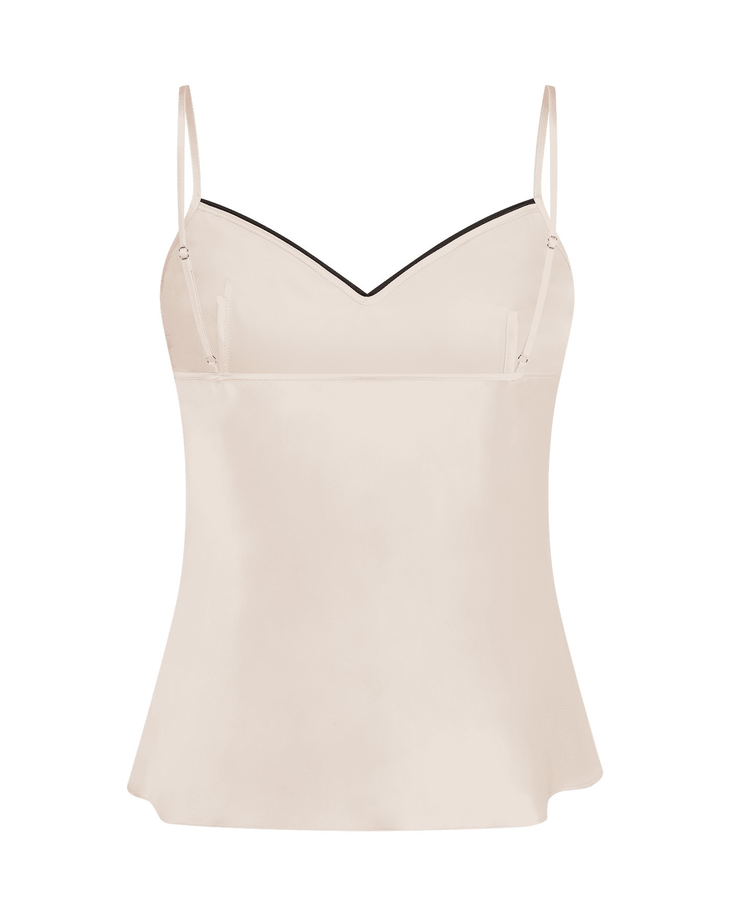 Дополните свой базовый будуарный гардероб нашим классическим топом культового розового цвета АР. Изготовленный из шелка со строчкой черного цвета, этот гладкий топ вместе с шортами и маской для сна станет роскошным комплектом для отдыха. Сочетайте с шортами и маской.