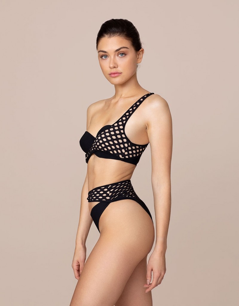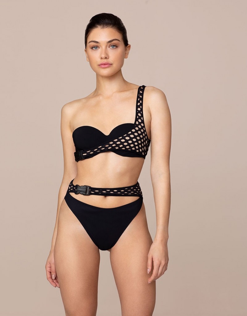 Выполненные в стиле винтажного купального костюма с трендовыми элементами одежды для дайвинга, плавки бикини Lopez с высокой талией отличаются смелым дизайном. Верхняя панель из лайкры и крупной сетки повторяет изгибы тела, а пластиковая застежка спереди завершает образ.