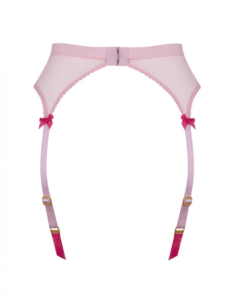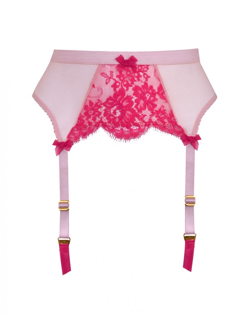Встречайте Rowana, милую и сексуальную коллекцию из ярко-розового кружева и мягкого светло-розового тюля. Пояс с рельефной оторочкой украшен передней панелью из кружева. Шелковые пажи сочетаются с широкой эластичной винтажной лентой на талии. Розовые бантики завершают образ.