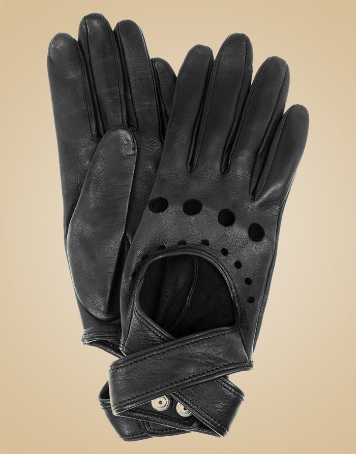 Перчатки для вождения из мягкой кожи с перекрестными ремнями.