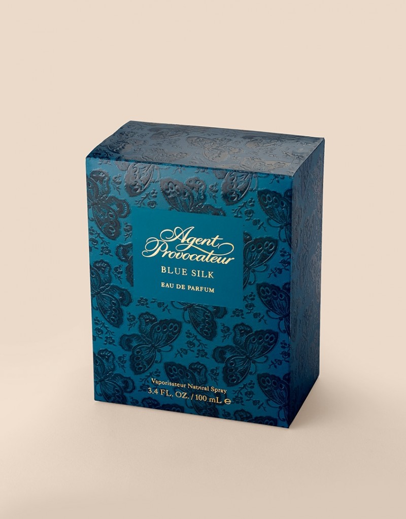 Роскошная красота синего шелка отражена в новом аромате Agent Provocateur Blue Silk. Эта незабываемая композиция с провокационными нотками создает романтичную атмосферу. Свежесть цитрусов дополнена аккордом ароматного можжевельника, а сочность нектарина оттенена пряностью розового перца. Вся эта волнующая симфония покоится на базе из древесно-мускусных граней, чтобы сделать парфюм более насыщенным и ярким. Верхние ноты композиции представлены можжевельником, розовым перцем, лимоном и сочным мандарином. Сердечные аккорды - это теплая корица, цветущая алая роза, нежный жасмин и спелый нектарин. База аромата состоит из нот сандала, бобов Тонка, ветивера и мускусных оттенков. Синий каплевидный флакон украшен двумя элегантными черными лентами на горлышке. По оригинальной задумке дизайнеров, на флаконе отсутствует колпачок, чтобы ничто не мешало наслаждаться этим ароматом, когда вы пожелаете. Коробка флакона также выполнена в синем цвете и украшена красивым рисунком в виде черного изысканного принта с бабочками.