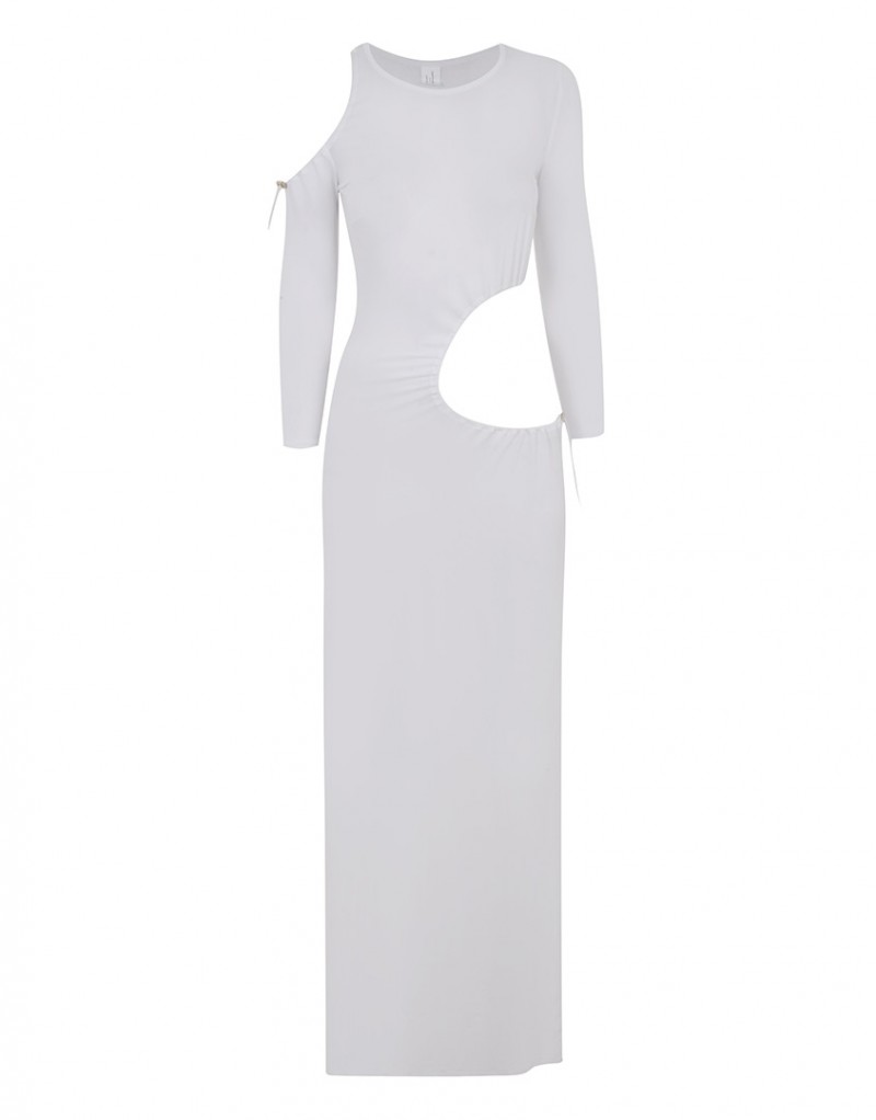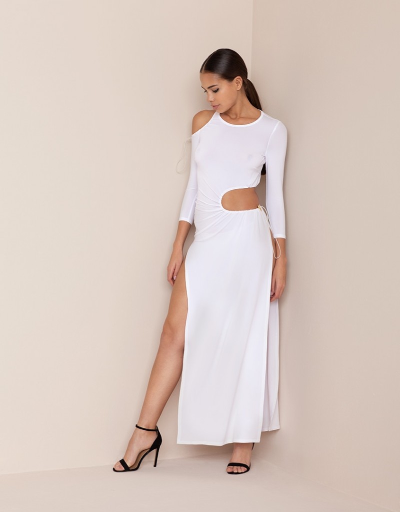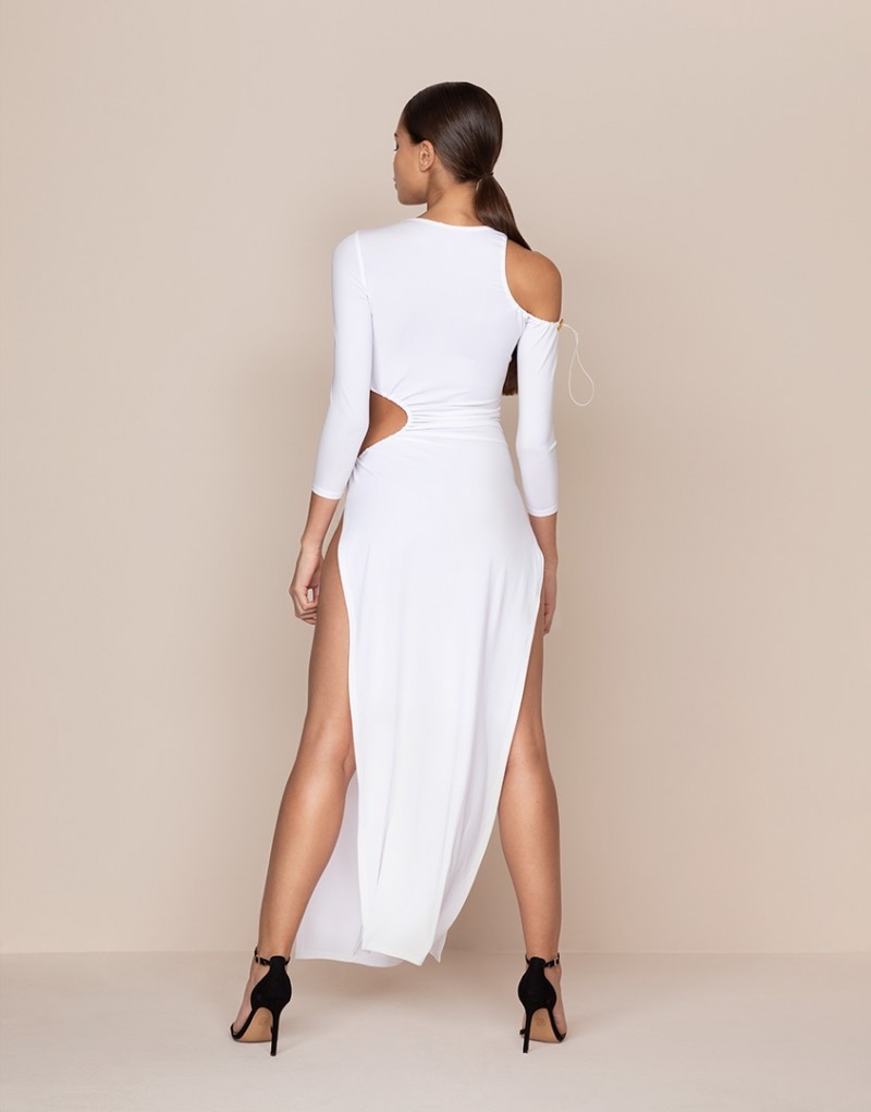 Соблазнительные вырезы на плече и талии придают элегантному платью Zofia с длинными рукавами ноту интригующего очарования.