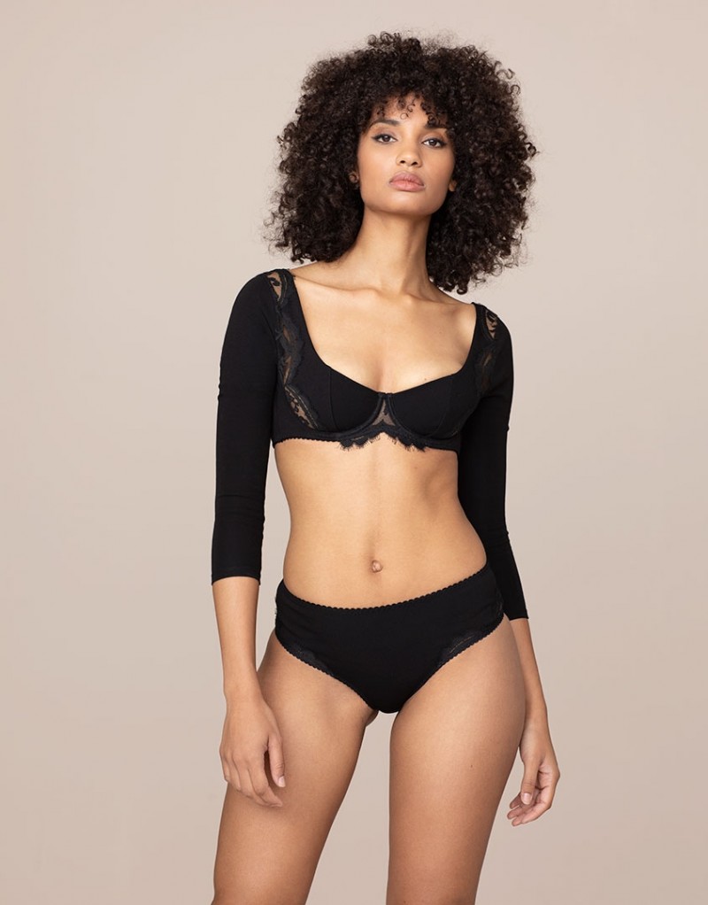 Страстная Nadina нарушает правила. Гладкие черные трусики из джерси сзади украшены соблазнительной вставкой из французского кружева ливерс.