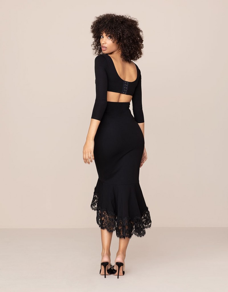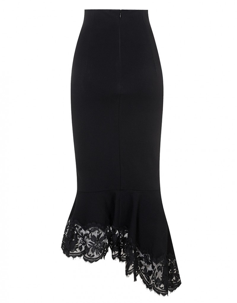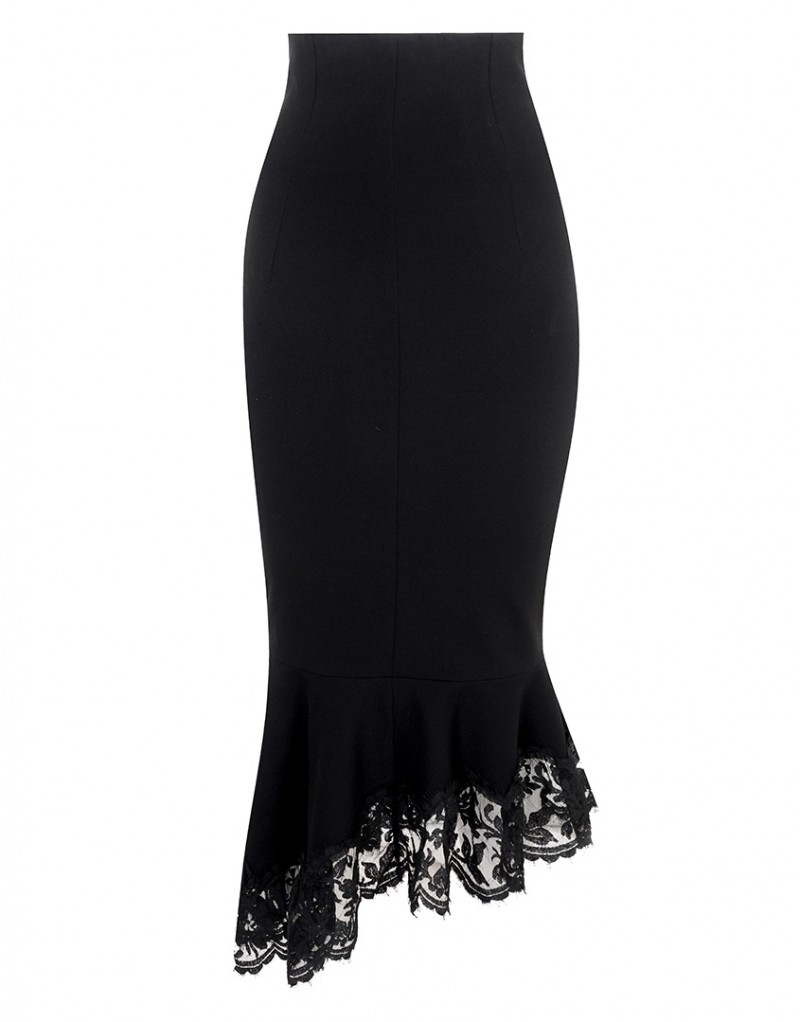Страстная Nadina нарушает правила. Элегантная черная юбка миди из джерси и французского кружева соблазнительно обтягивает фигуру. Короткий спереди и удлиненный сзади асимметричный подол дополняет эту модель. Сочетайте с бюстгальтером Nadina для создания незабываемого вечернего образа.
