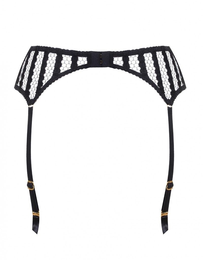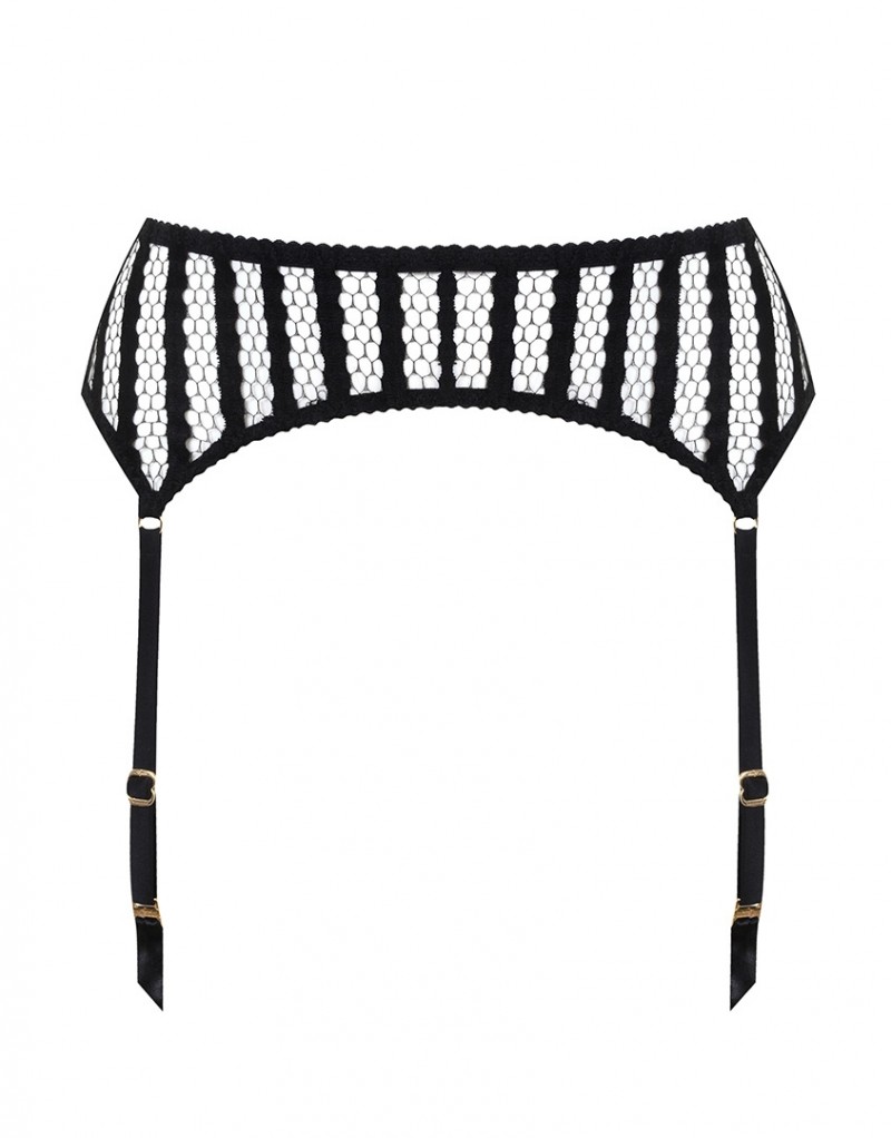 Cardi подчеркивает вашу темную сторону, непростительно сексуально заявляя о себе. Высокий пояс выполнен из полосного кружева с крупной сеткой, которое создается на ткацких станках во Франции. Модель украшена кристаллами Сваровски вдоль каждой кружевной ленты. Черный бантик на талии завершает образ. - Сочетайте с комплектом белья Cardi - Кристаллы Сваровски Материалы и уход: Основной материал: 86% вискоза, 14% полиамид. Рекомендована ручная стирка.