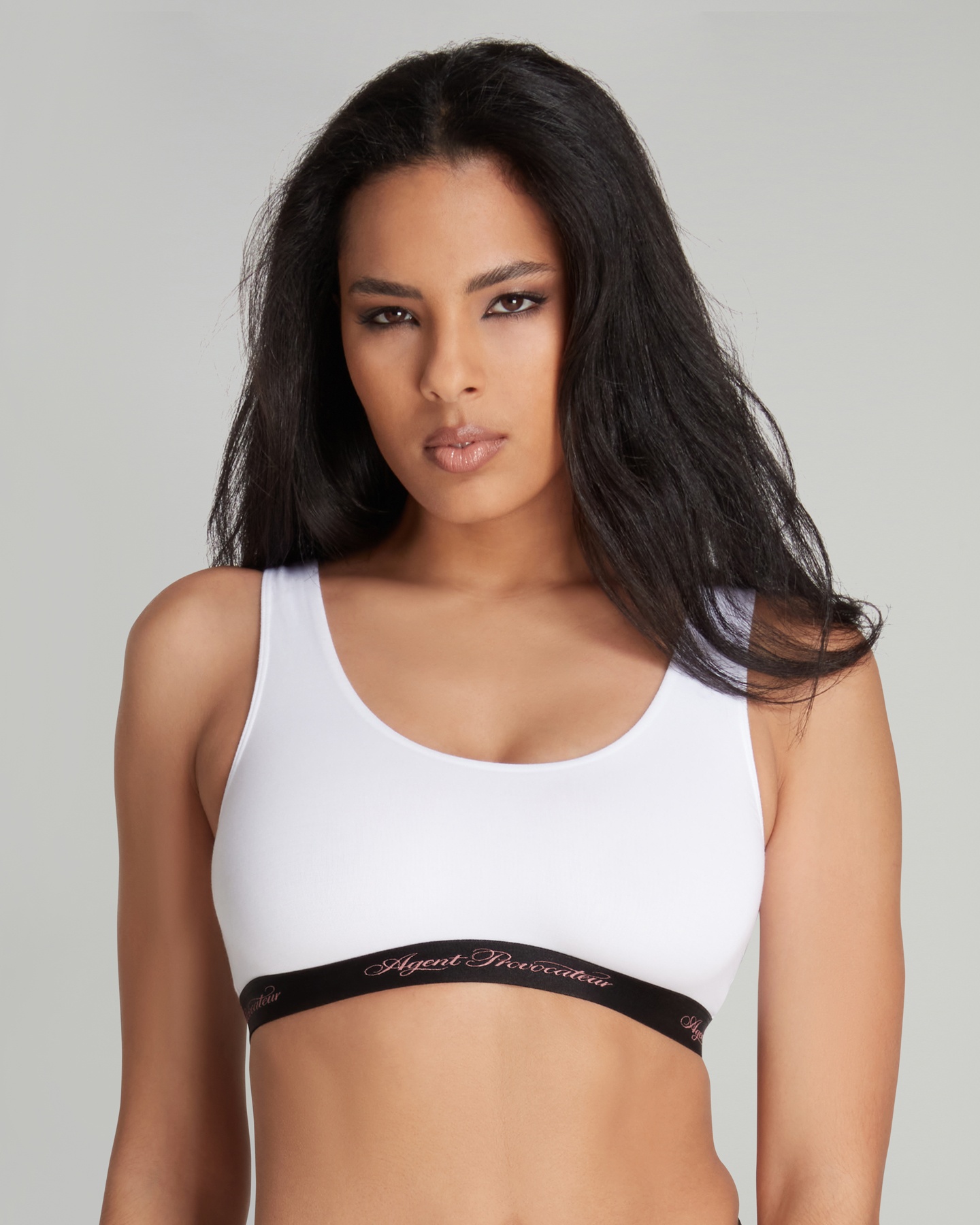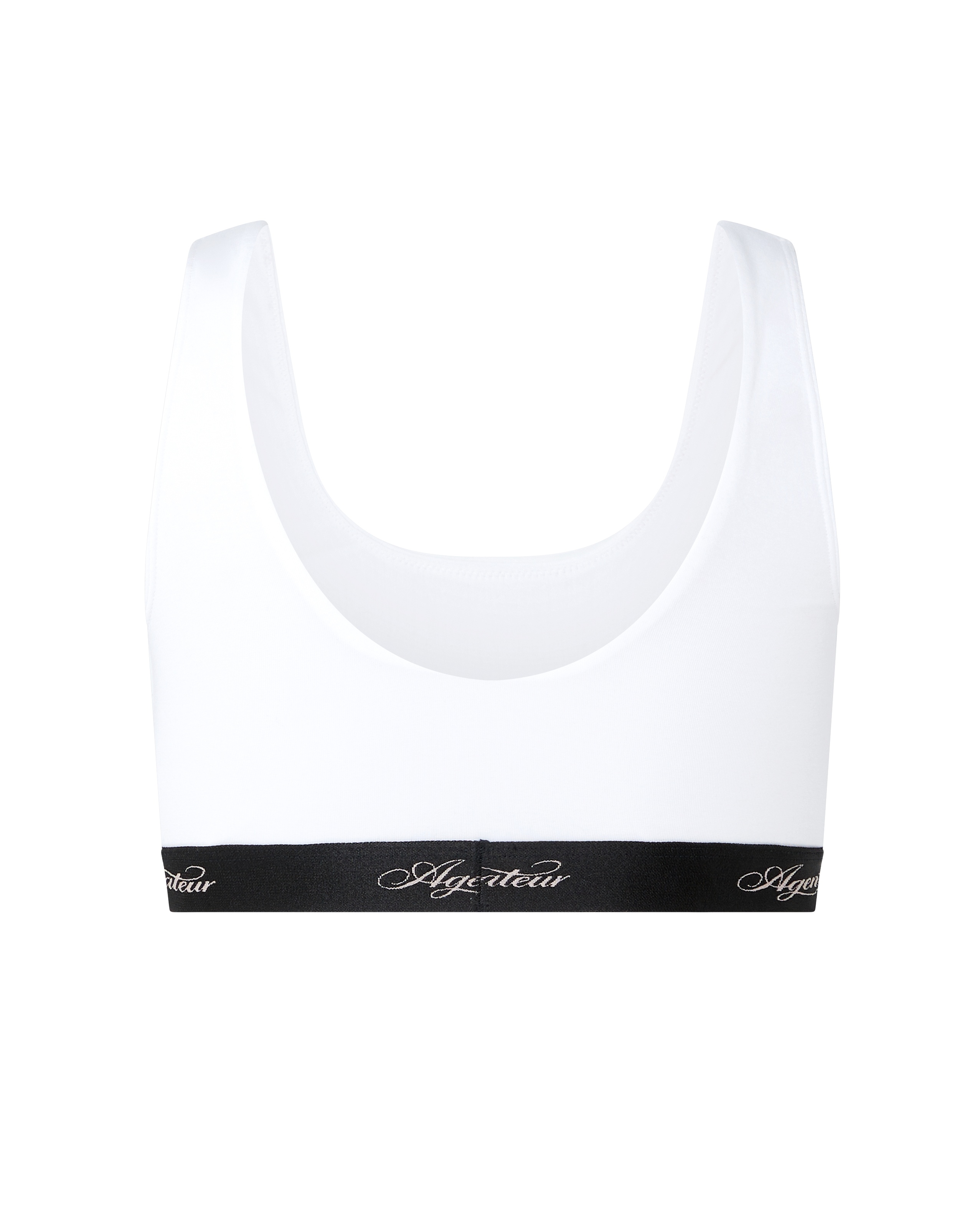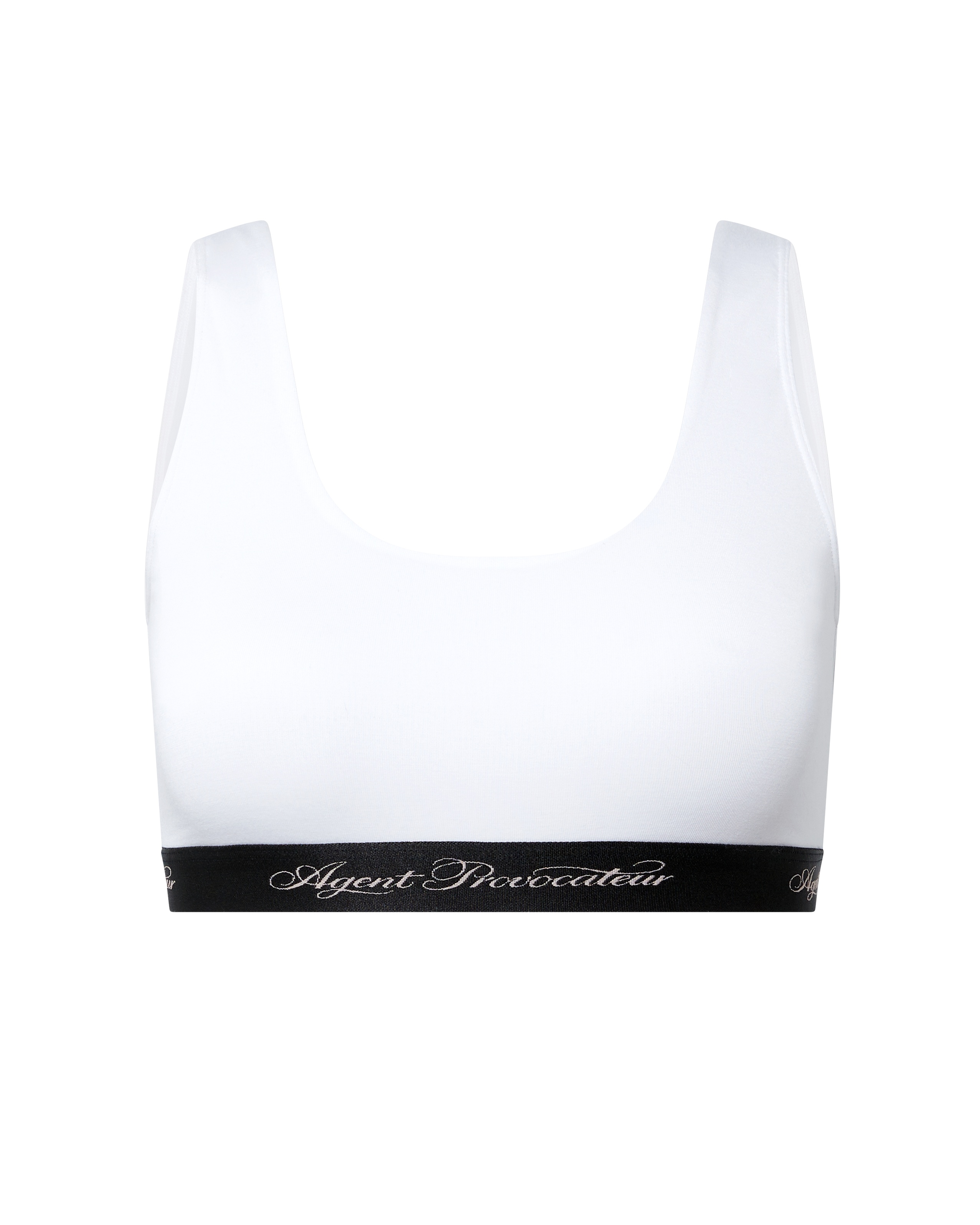 Бралет Clea белого цвета из мягкой модальной ткани с классическим кроем. Нижняя часть украшена черной лентой с логотипом AP. Создайте базовый комфортный образ с другими предметами Clea.