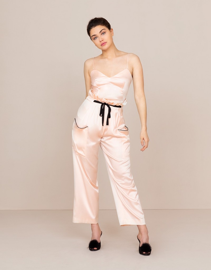Розовый шелковый пижамный топ можно носить и в спальне, и на выход. Тонкие бретели, V-образный вырез и рельефные швы завершают образ. - Регулируемые бретели - Сочетайте с другими вещами из коллекции Ezra Материалы и уход: 100% шелк Рекомендована ручная стирка.