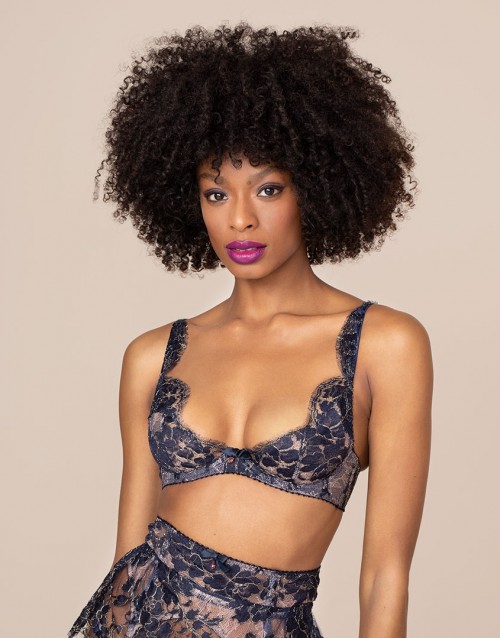 Непозволительно роскошная Mimosa - воплощение романтических грез. Бюстгальтер из персикового кружева украшает контрастный верхний слой темно-синего и золотого французского кружева Ливерс. Внутренняя подкладка из шелкового сатина, мягкая кружевная оторочка и маленький бантик между чашек с подвеской-кристаллом Swarovski завершает утонченный образ. Сочетайте с комплектом белья и халатом Mimosa.