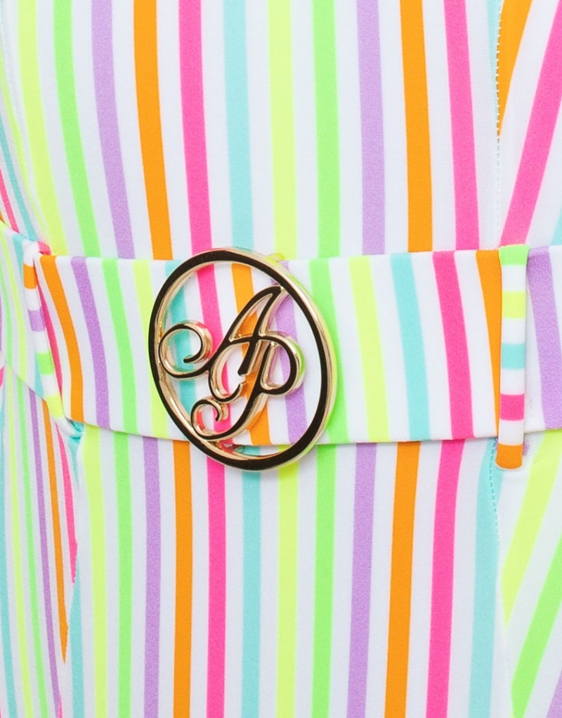Вдохновленный балетными трико с круглым вырезом и открытой спиной, дерзкий купальник Laurella выполнен из роскошного итальянского материала. Белый купальник с эластичным декоративным поясом, подчеркивающим талию, украшен золотистой фурнитурой с гравировкой AP. Высокий вырез вдоль линии бедер и тонкие бретели завершают образ. Детали: бретели можно носить перекрещенными на спине для создания изысканного силуэта. Позолоченная фурнитура. Регулируемые бретели. Материалы и уход: 75% полиамид, 25% эластан. Подкладка: 75% полиамид, 25% эластан. Рекомендована раздельная ручная стирка.