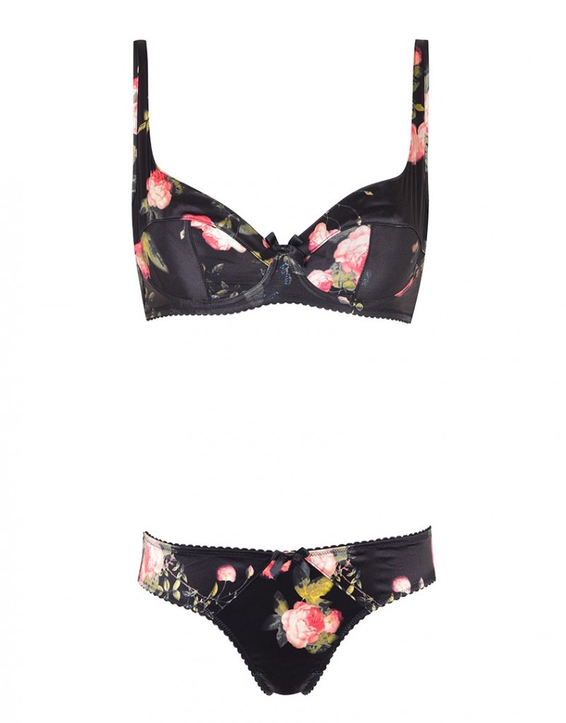 Дерзайте мечтать в Elora. Чувственный цветочный принт с нежными и драматичными розами делает эту модель столь привлекательной. Бюстгальтер дополнен застежкой на спине, черными сатиновыми бантиками и поддерживающими бретелями. Детали: сочетайте с другими моделями Elora. Материалы и уход: принт: 91% шелк, 9% эластан. Спинка: 100% хлопок. Черный материал: 88% вискоза, 9% полиамид, 3% эластан. Подкладка чашки: 100% хлопок. Рекомендована ручная стирка.