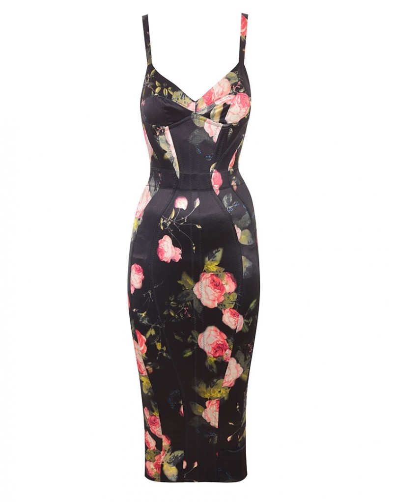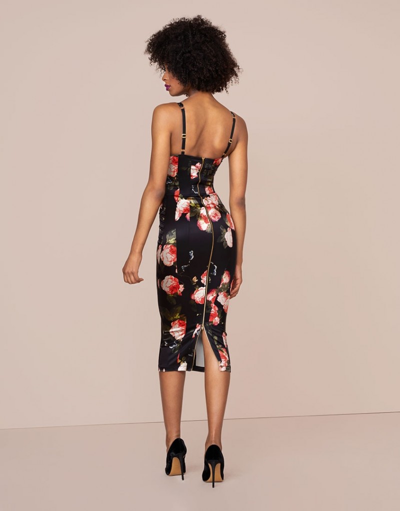 Дерзайте мечтать в Elora. Чувственный цветочный принт с нежными и драматичными розами делает эту модель столь привлекательной. Обтягивающее миди-платье с бюстье дополнено застежкой-молнией на спине. Детали: сочетайте с трусиками Elora. Материалы и уход: основной материал: 95% шелк, 5% эластан. Подкладка: 91% шелк, 9% эластан. Рекомендована ручная стирка.