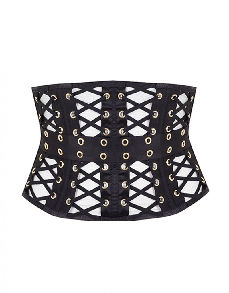 Prudence станет самой дерзкой коллекцией вашего будуара. Пояс в бандажном стиле с золотыми люверсами и перекрещивающимися лентами дополнен подкладкой из тонкого прозрачного тюля. Детали: сочетайте с комплектом белья Prudence. Материалы и уход: 84% полиамид, 16% эластан. Рекомендована ручная стирка.