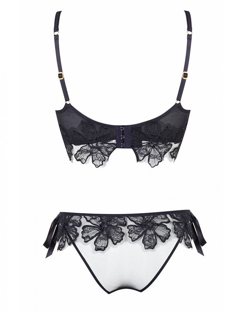 Seraphina - настоящее воплощение женственности, украшающее тело романтичными цветами. Черные трусики tie-side из тюля с оторочкой декорированы восхитительной австрийской цветочной вышивкой, дизайн которой был специально разработан для Agent Provocateur. Сатиновые ленты по бокам завязываются в игривые бантики, которые при желании очень просто развязать. Сочетайте с комплектом белья Seraphina.