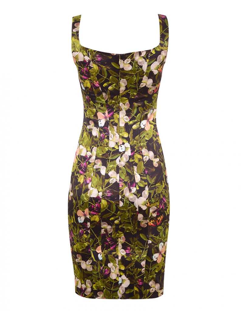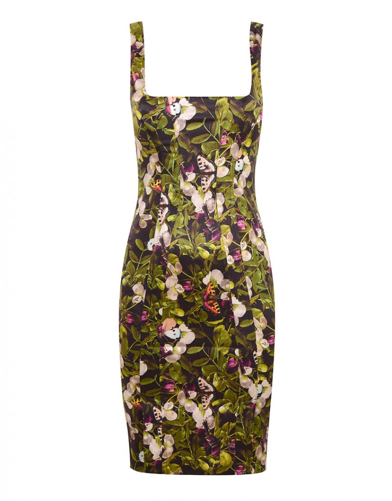 Погрузитесь в мир чувственности с восхитительной коллекцией Annelise, украшенной растительным принтом, навеянным садами Марии Антуанетты. Короткое разноцветное платье из шелка стрейч с квадратным декольте дополнено продольными вырезами на бедрах. Детали: посадка по фигуре. Материалы и уход: 95% шелк, 5% эластан. Рекомендована ручная стирка.