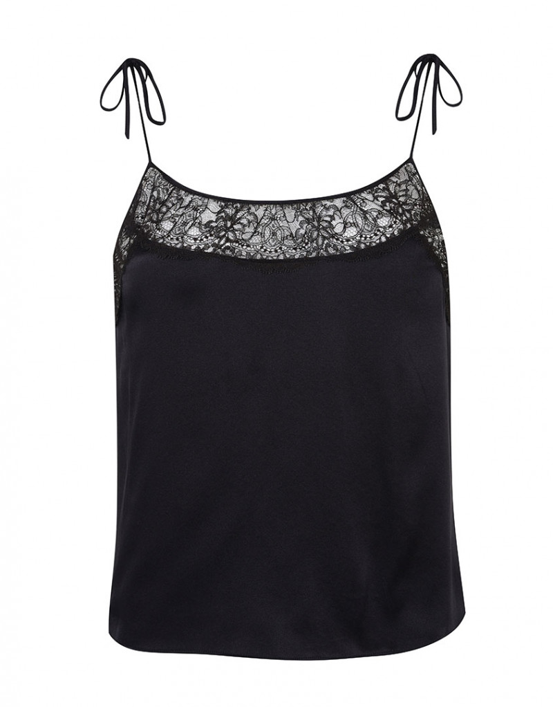Проведите вечер в атмосфере вседозволенности с Annamae! Черный шелковый топ на бретелях украшен кружевной отделкой вдоль линии декольте и на спине. Открытая спинка с двумя тонкими завязками завершает образ. Детали: сочетайте с брюками пижамы Annamae. Материалы и уход: 57% шелк, 37% вискоза, 6% эластан. Кружево: 100% полиамид. Рекомендована сухая чистка.