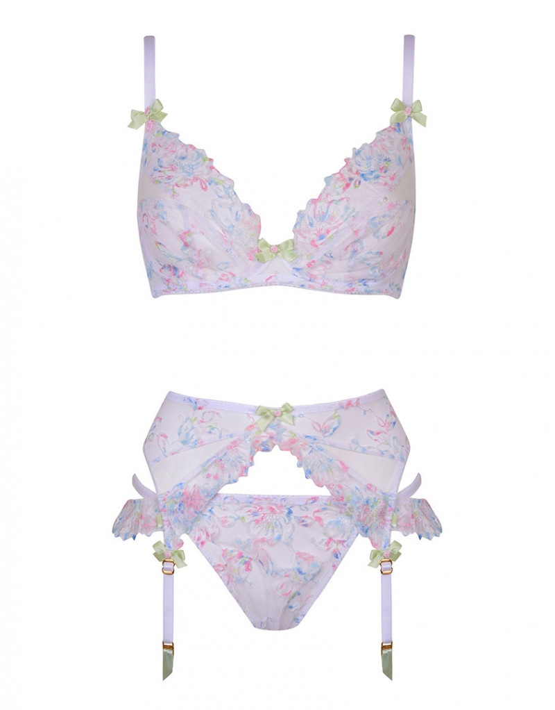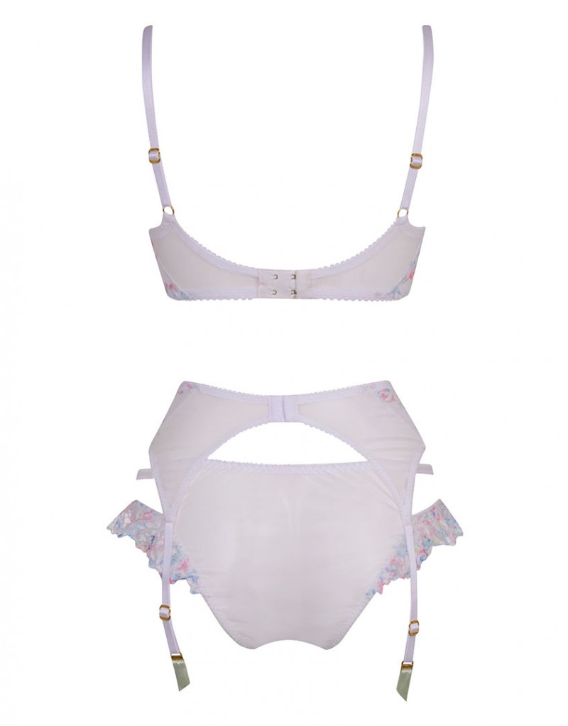 Откройте настоящую романтику с Leisha. Белые трусики украшены бледно-розовой и голубой вышивкой. Двойные боковые тесемки, игривые кружевные оборки и бантики завершают образ.