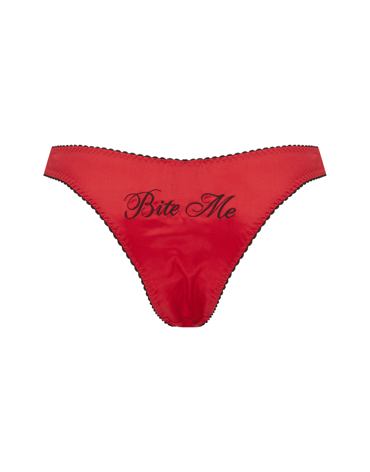 Трусики брифы Buffy с глубокими вырезами бразильяна, соблазнительно открывающими изгибы бедер. Для этой модели мастера Agent Provocateur выбрали гладкий шелковый атлас красного цвета и контрастный декор в виде черных окантовок и вышивки Bite Me сзади. Еще одним акцентом стал атласный бантик по центру.