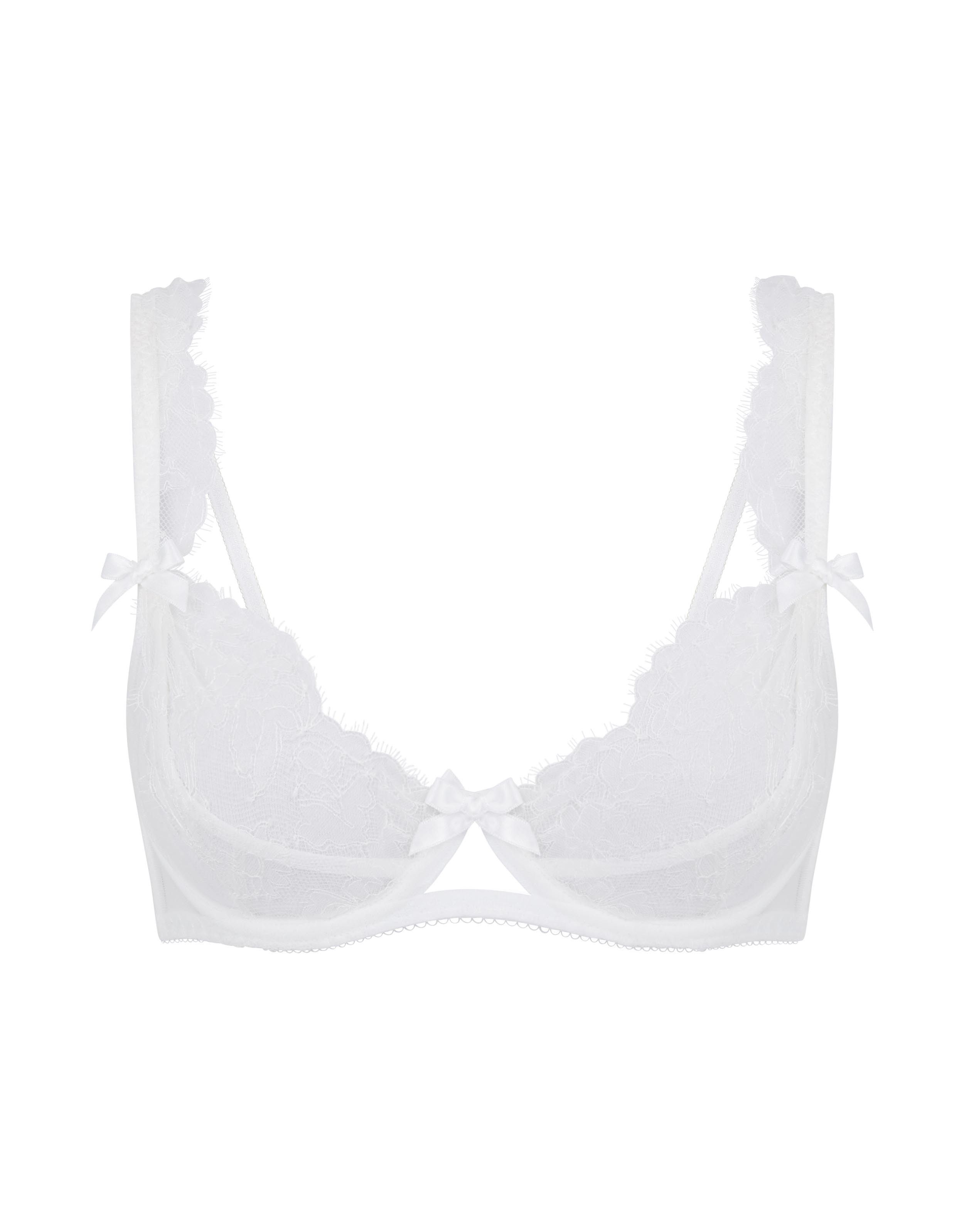 Бюстгальтер Willa с глубоким декольте, украшенным волнообразными краями кружева. Модель в цвете слоновой кости дополнена тюлем телесного цвета, специально для невероятно нежного нюдового эффекта. Широкие бретели также украшены кружевом. Эта модель в паре с трусиками Willa может стать вариантом для свадебного образа.