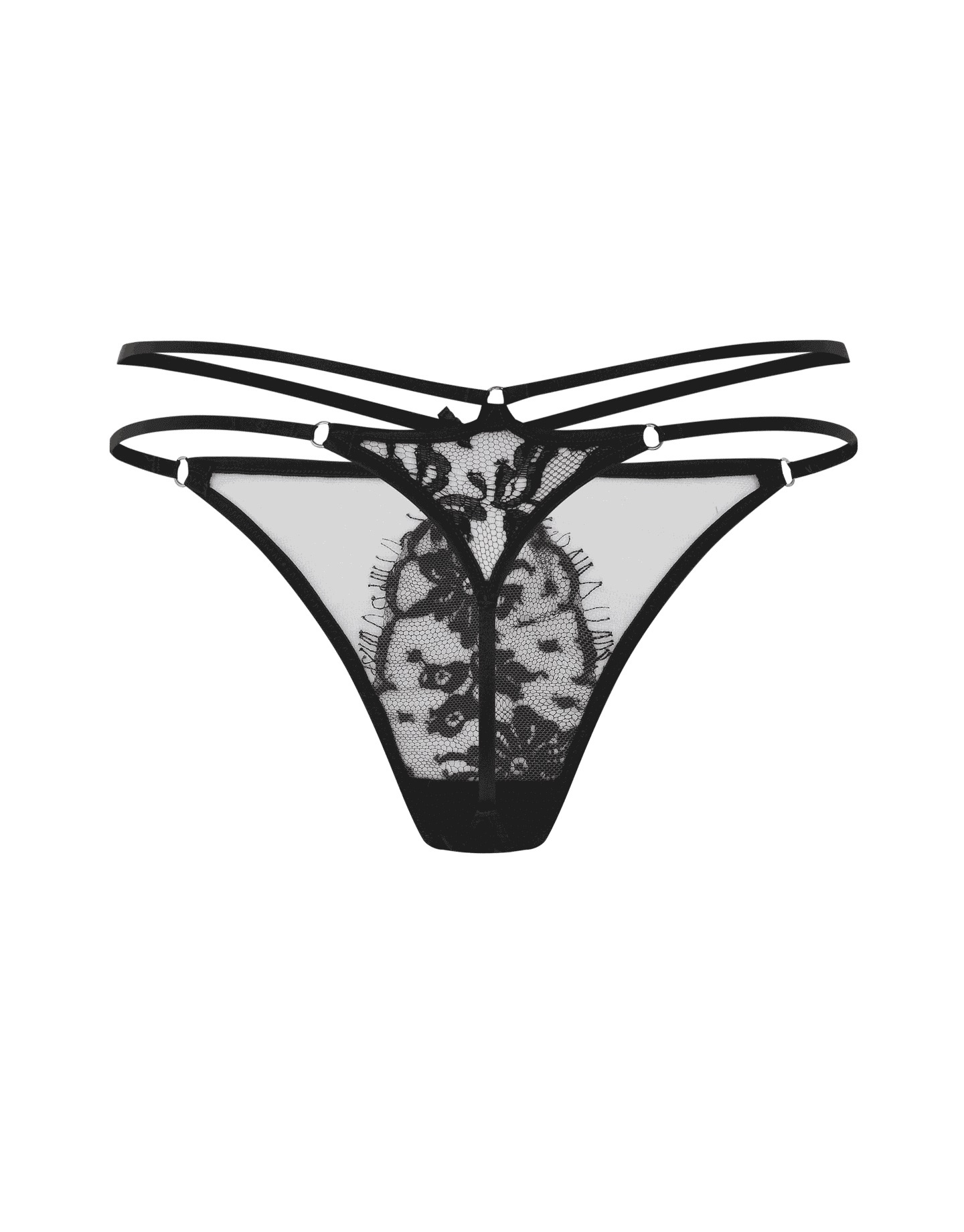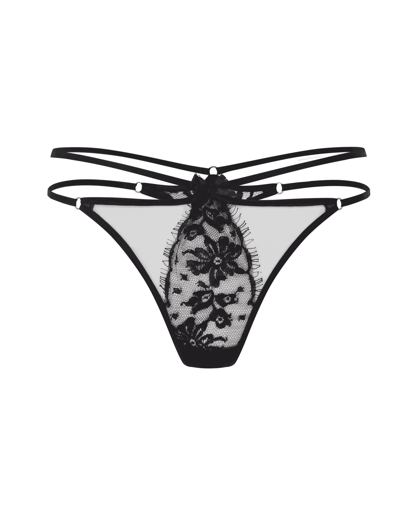 Трусики-стринг из коллекции Kourtney дополнят чувственный образ в духе Agent Provocateur в паре с бюстгальтером из этой же серии. Полупрозрачная сетка декорирована роскошным французским черного цвета, что создает нюдовый эффект.