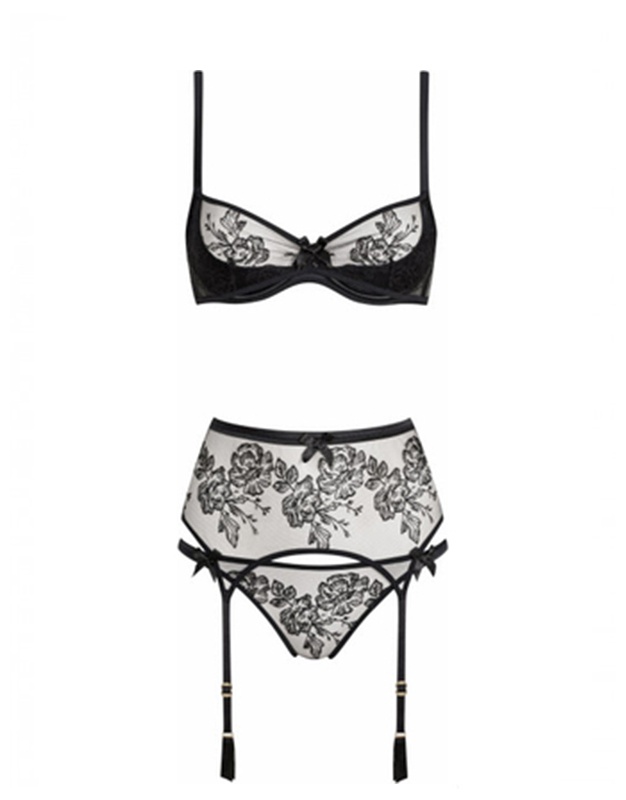 Комплект Gloria безупречен и невероятно смел. Классические трусики из черного тюля украшены цветочной вышивкой, создающей эффект татуажа на обнаженном теле. Окантовка из шелка по краям и игривый бантик на талии завершают образ.