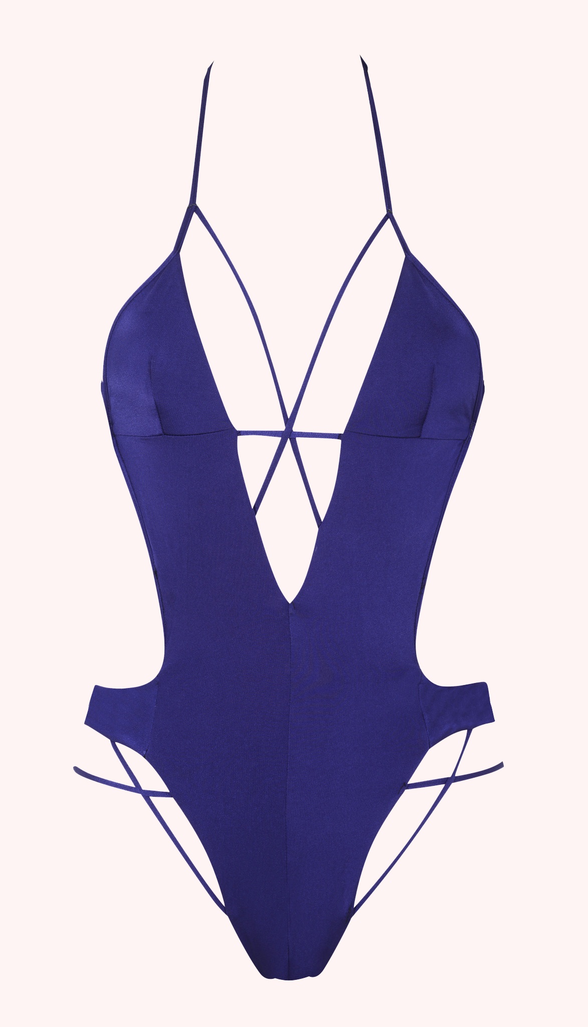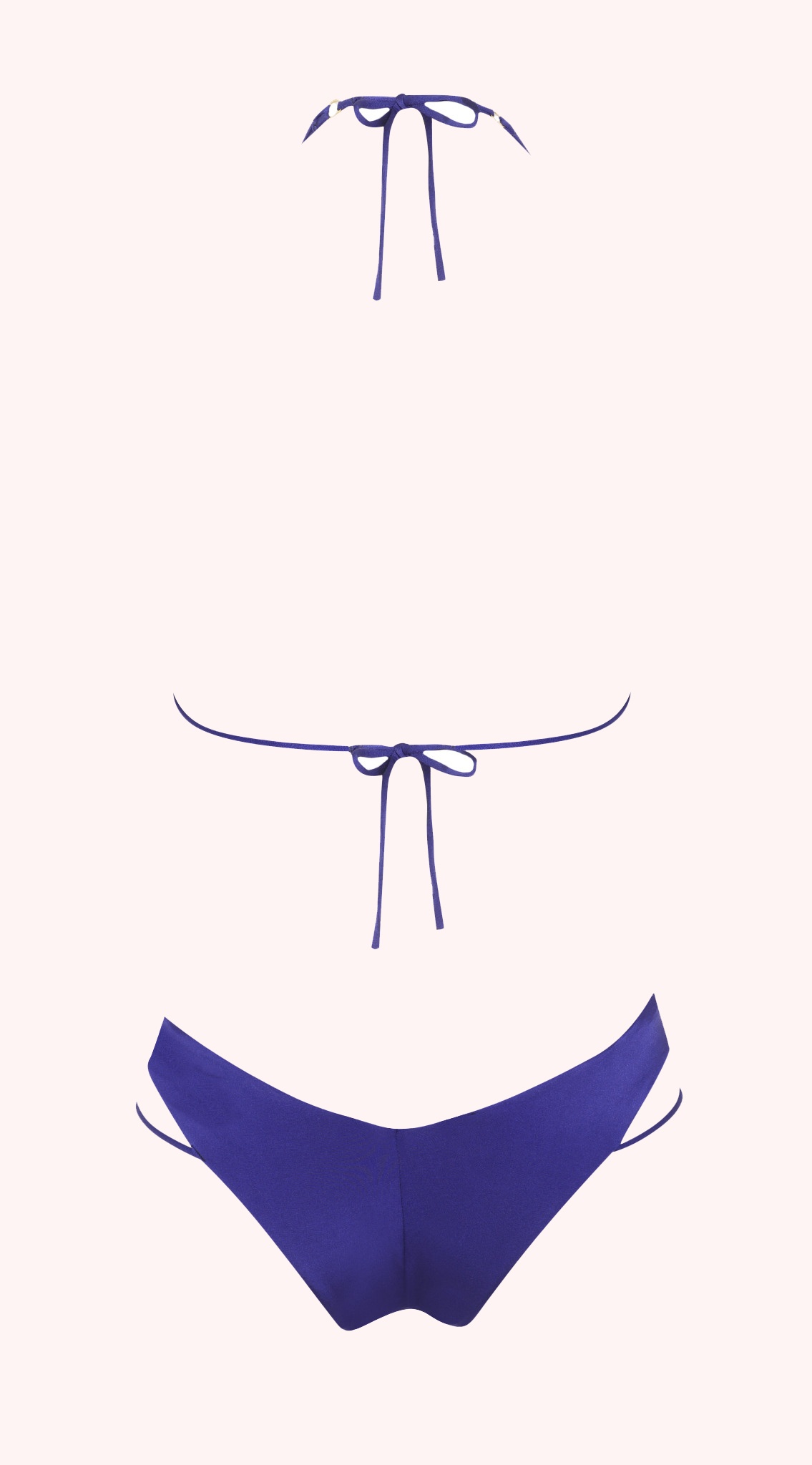 Горячая Fiorella – настоящая пляжная обольстительница! Купальник цвета индиго из гладкой и блестящей ткани с мягкими треугольными чашками украшают декоративные лямки, акцентирующие внимание на глубоком вырезе в зоне декольте. Вырезы по бокам и высокие трусики добавляют этой модели манящей провокационности. Купальник завязывается на затылке и на спине.