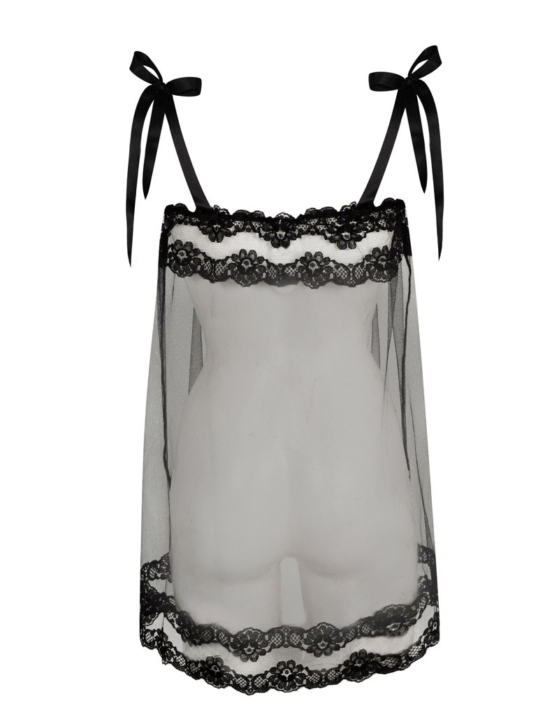 Сыграйте в искушенную соблазнительницу в Lacy. Ультра-прозрачная и ультра-сексуальная сорочка из мягкой тюлевой сетки оторочена изысканным цветочным кружевом ливерс на воротнике и по подолу. Лямки из черной сатиновой ленты регулируются, позволяя подогнать модель по фигуре. Сочетайте с другими моделями коллекции Lacy для создания роскошного будуарного образа.