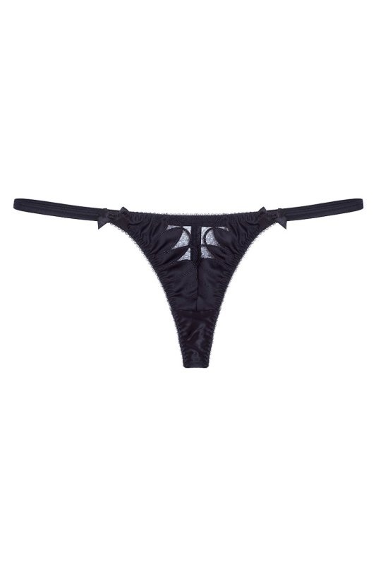 Простой, но впечатляющий комплект Ellin выполнен из гладкого черного сатина с изысканной австрийской вышивкой и декоративными вырезами, украшенными черной сеткой. Соблазнительные трусики стринги с передней панелью из прозрачной сетки, обрамленной декоративной вышивкой, и эластичными лямками на бедрах позволят чувствовать себя шикарно каждый день!
