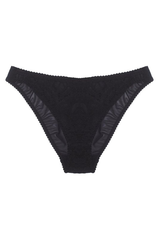 Откровенно сексуальная и подчеркивающая фигуру Sally – pin up королева этого сезона. Черные трусики из роскошного кружева стрейч и крупной сетки украшены округлой панелью спереди и прозрачной вставкой сзади. Игривая молния на ягодицах из золотисто-розового металла придает современное звучание этой классической модели в стиле 50-х годов.