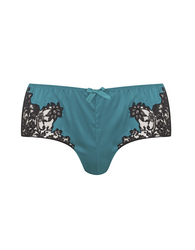 Nayeli - это великолепное сочетание бескомпромиссной роскоши и абсолютного изящества. Сексуальные трусики насыщенного изумрудного цвета выполнены в особой традиционной технике: аппликации черного французского кружева ливерс украшают шелковую базу, создавая привлекательный микс текстуры и яркого цвета. Черный шелковый бантик на талии завершает образ. Сочетайте с другими моделями деми-кутюрной коллекции Nayeli.